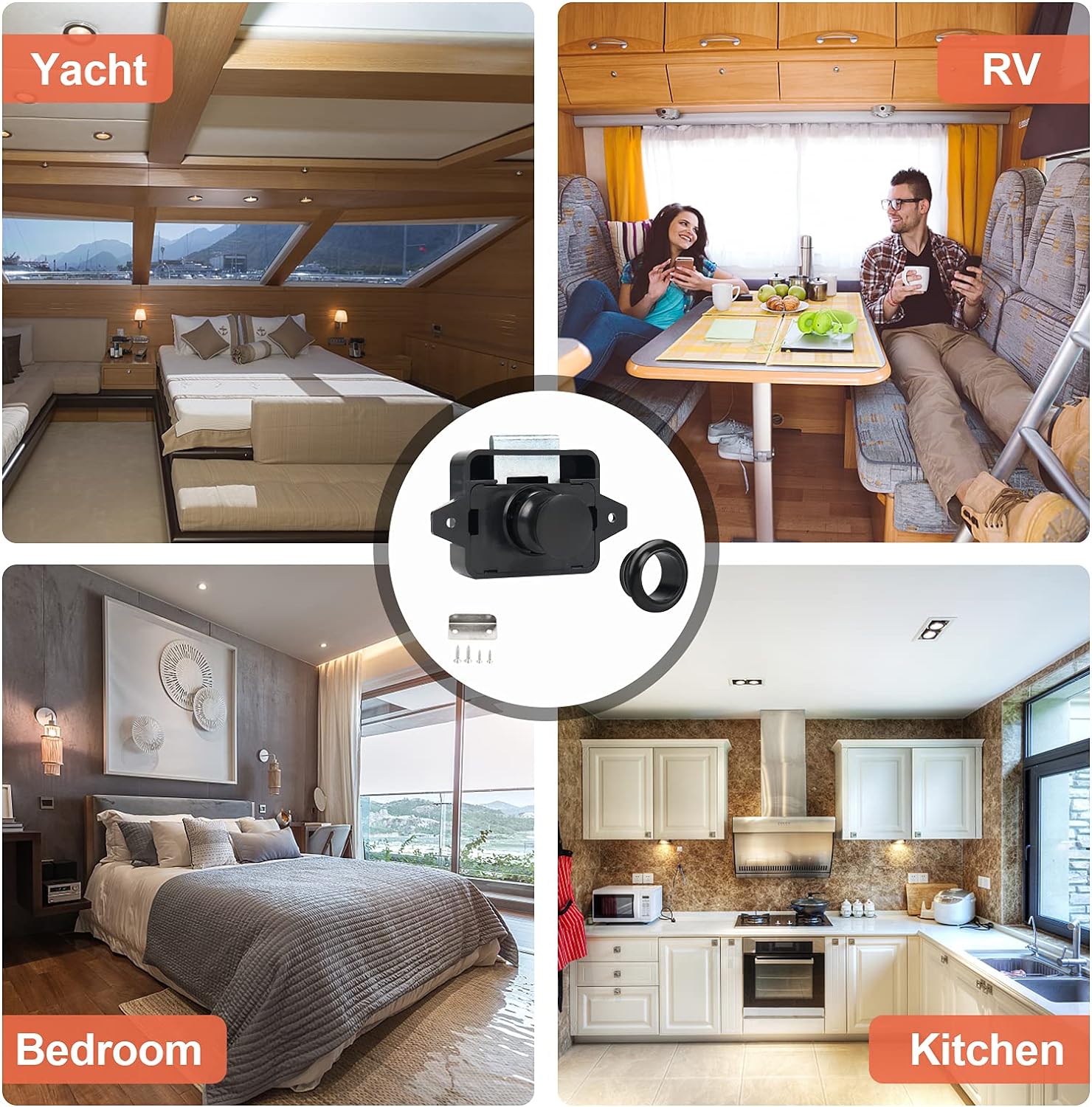 - 🔑【Breite Anwendung】Der Türknaufriegel hat ein einfaches silberfarbenes Design, schlicht und schön und passt zu den meisten Ihrer Möbelstile. Verriegelung Schrank kann in Yachten, RV-Hängeschränke, Wohnmobilen, Wohnwagen, Schubladen, Bootstischen, Schränken, Möbeln usw. verwendet werden.