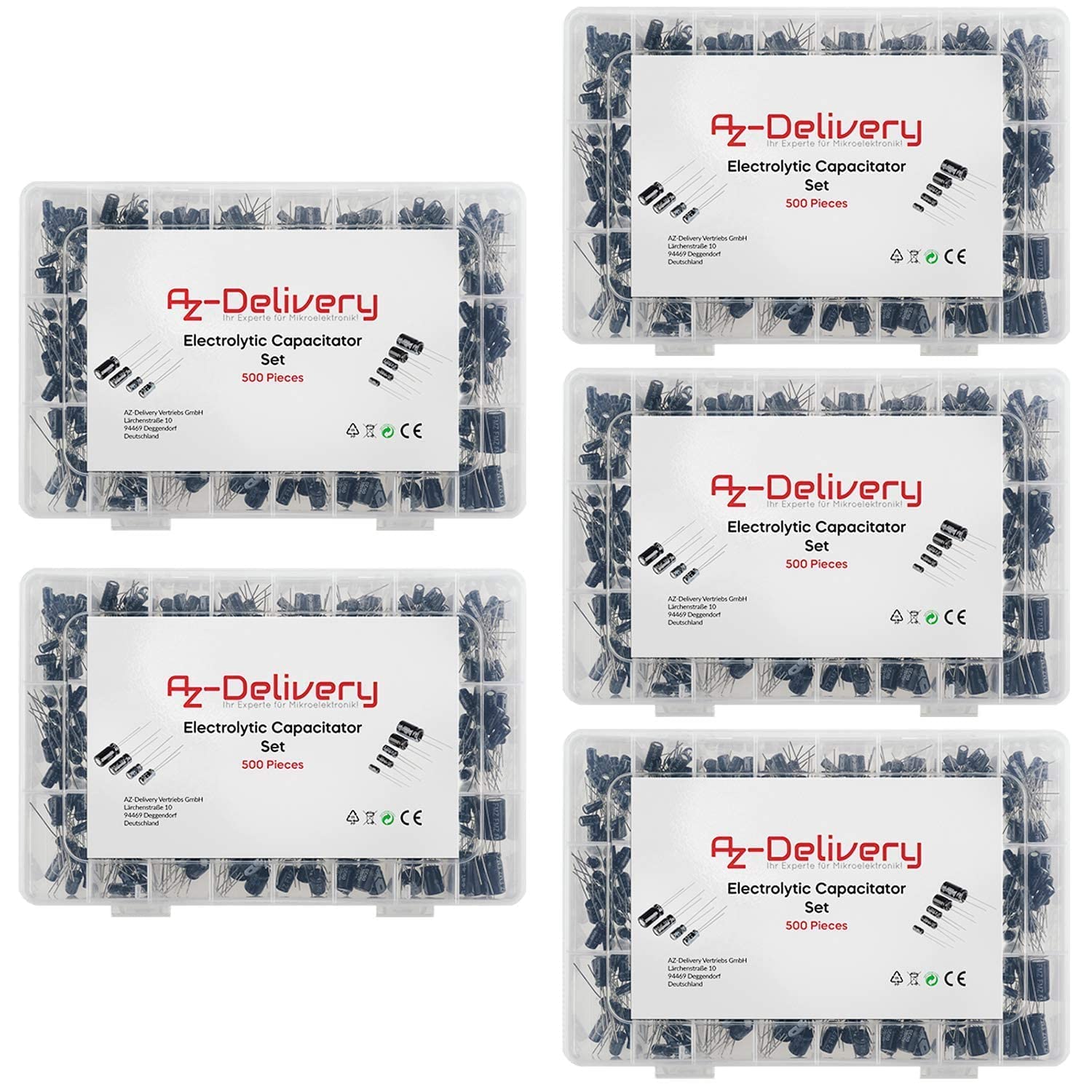 AZDelivery 5 x ElKo Sortiment Elektrolytkondensator Aluminium 24 Werte 500 Stück 0.1uF – 1000uF mit