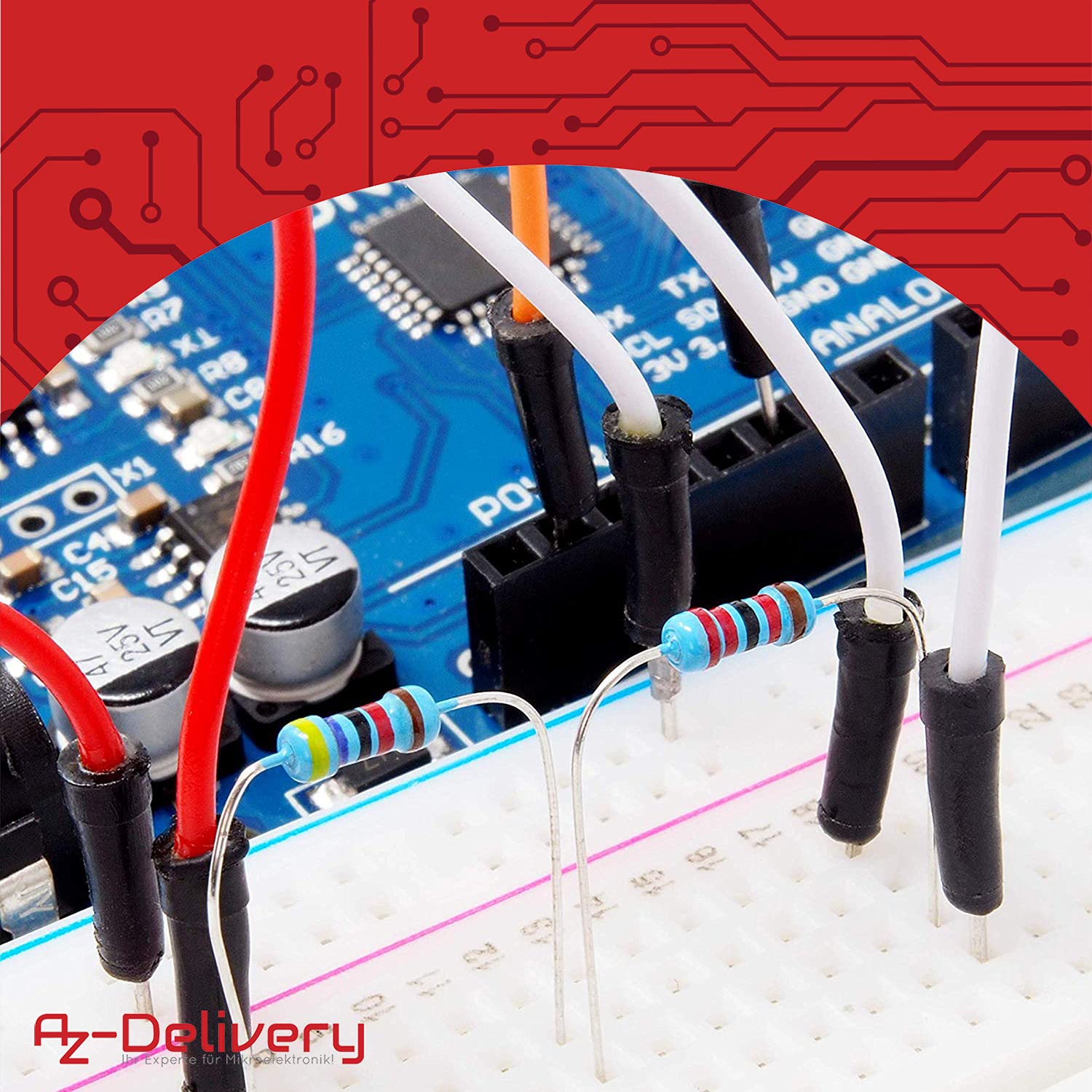 - ✅ Darauf haben unsere Ingenieure geachtet: Verbesserte Pins für eine stabile Verbindung und hohe thermische Stabilität zeichnet das AZ-Delivery Resistor Kit aus!