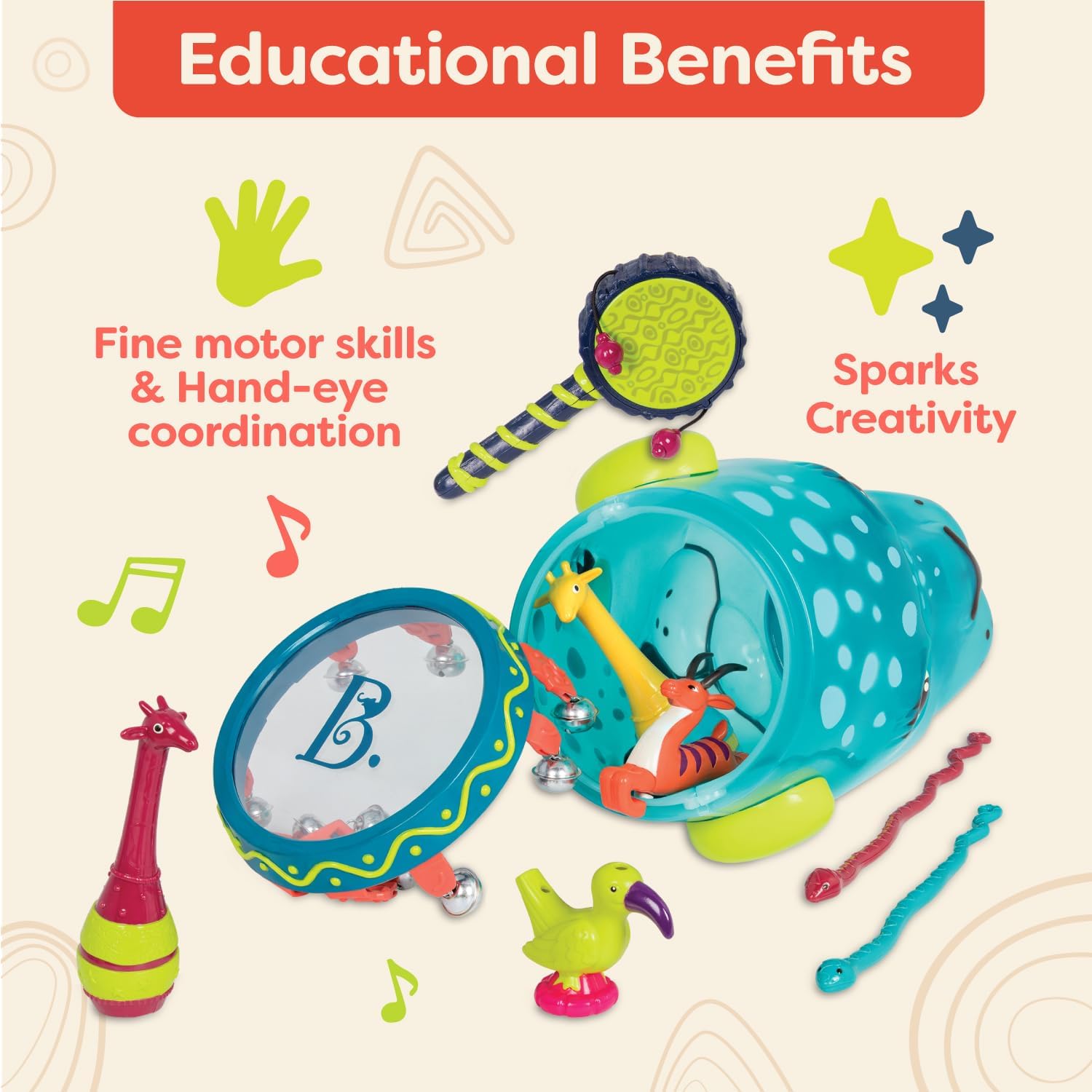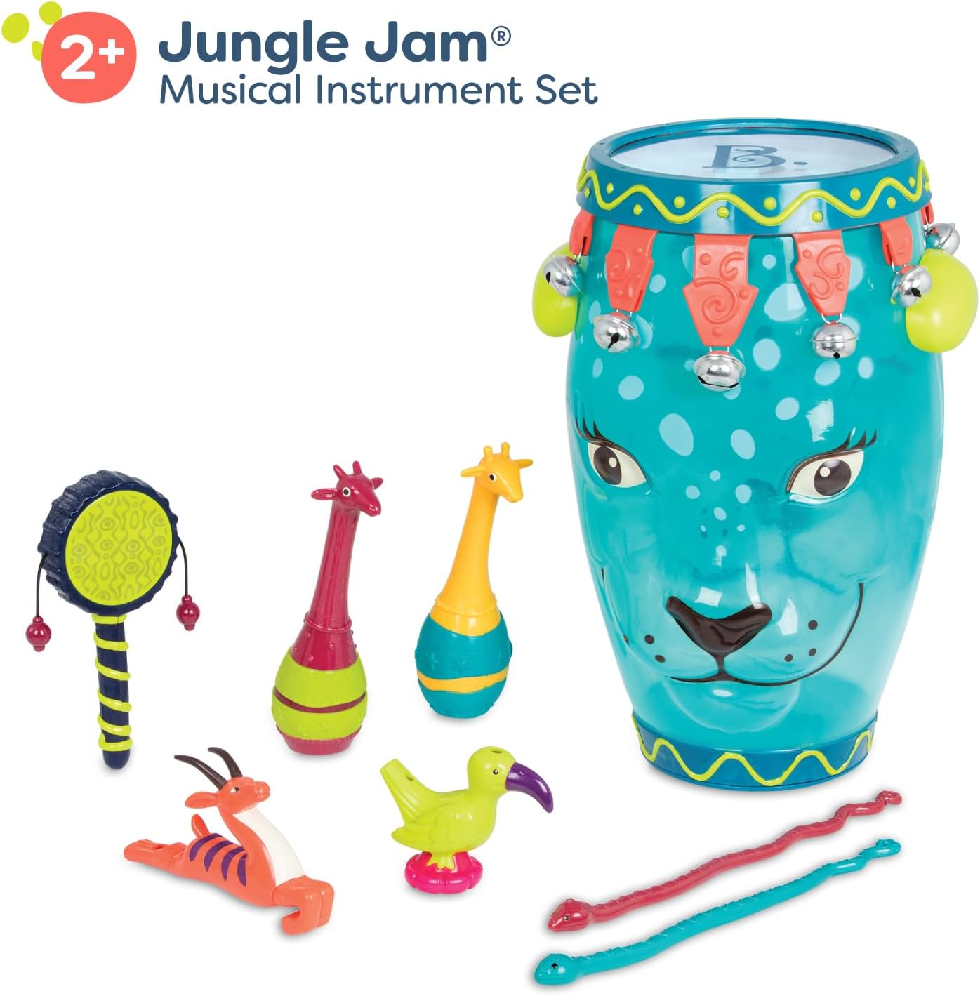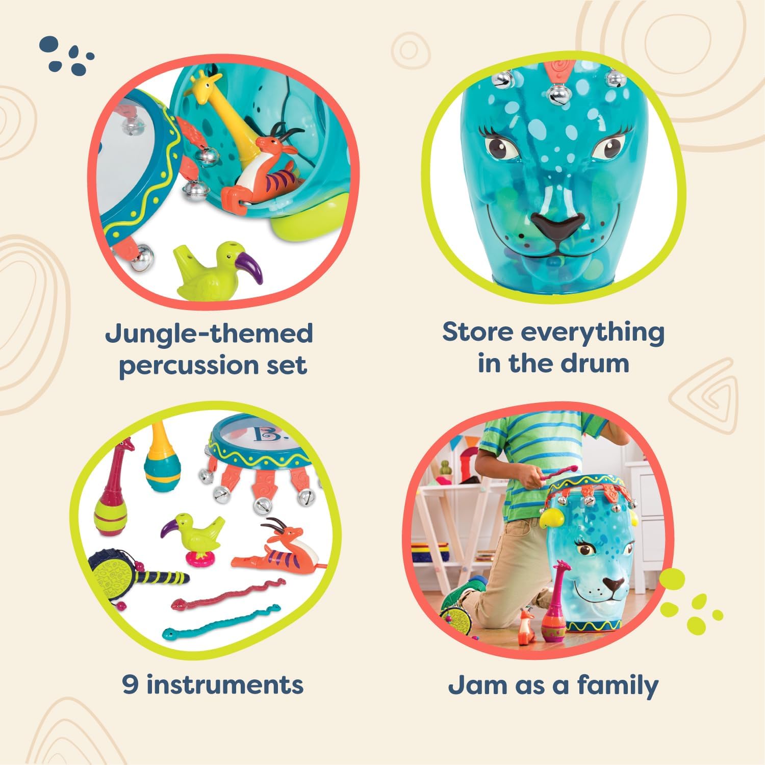 • Spielzeug Trommel für Kinder: Führen Sie Kinder in die wunderbare Welt der Musik ein - mit 9 Dschungel Instrumenten