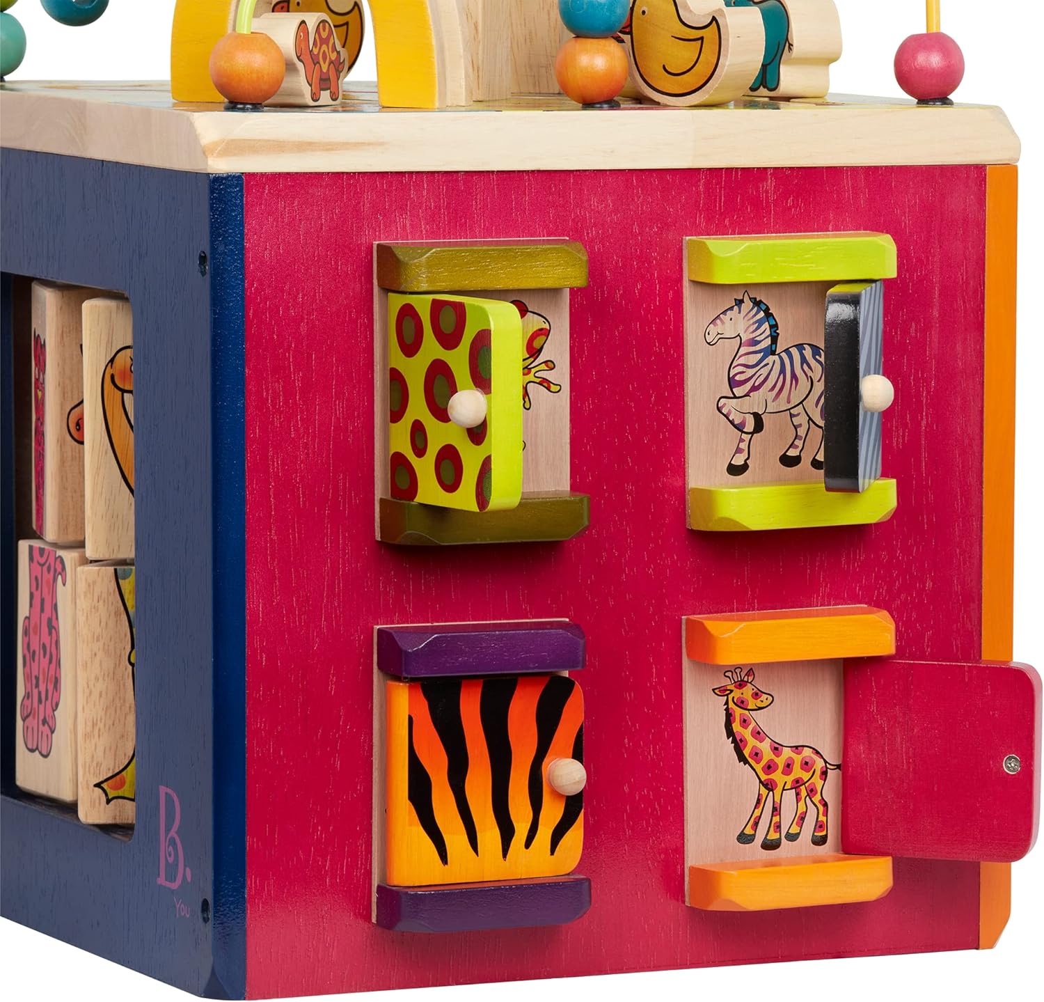 B. toys Grosser Motorikwürfel, Motorikspielzeug Activity Center mit Motorikschleife mit Zootieren, H