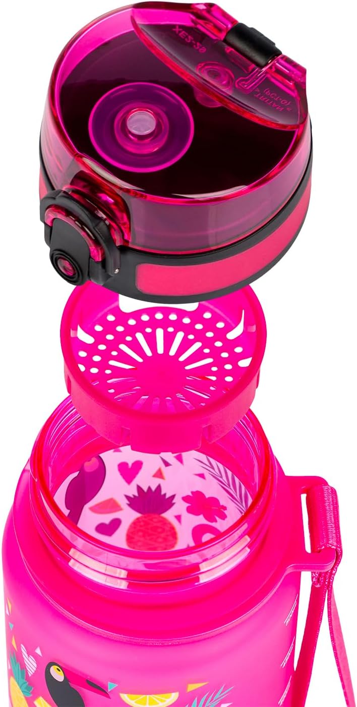 • ERGONOMISCH - Der verschliessbare Deckel lässt keinen Tropfen des Getränks auslaufen und die Flasche enthält auch ein Sieb für Fruchtgetränke oder Tee