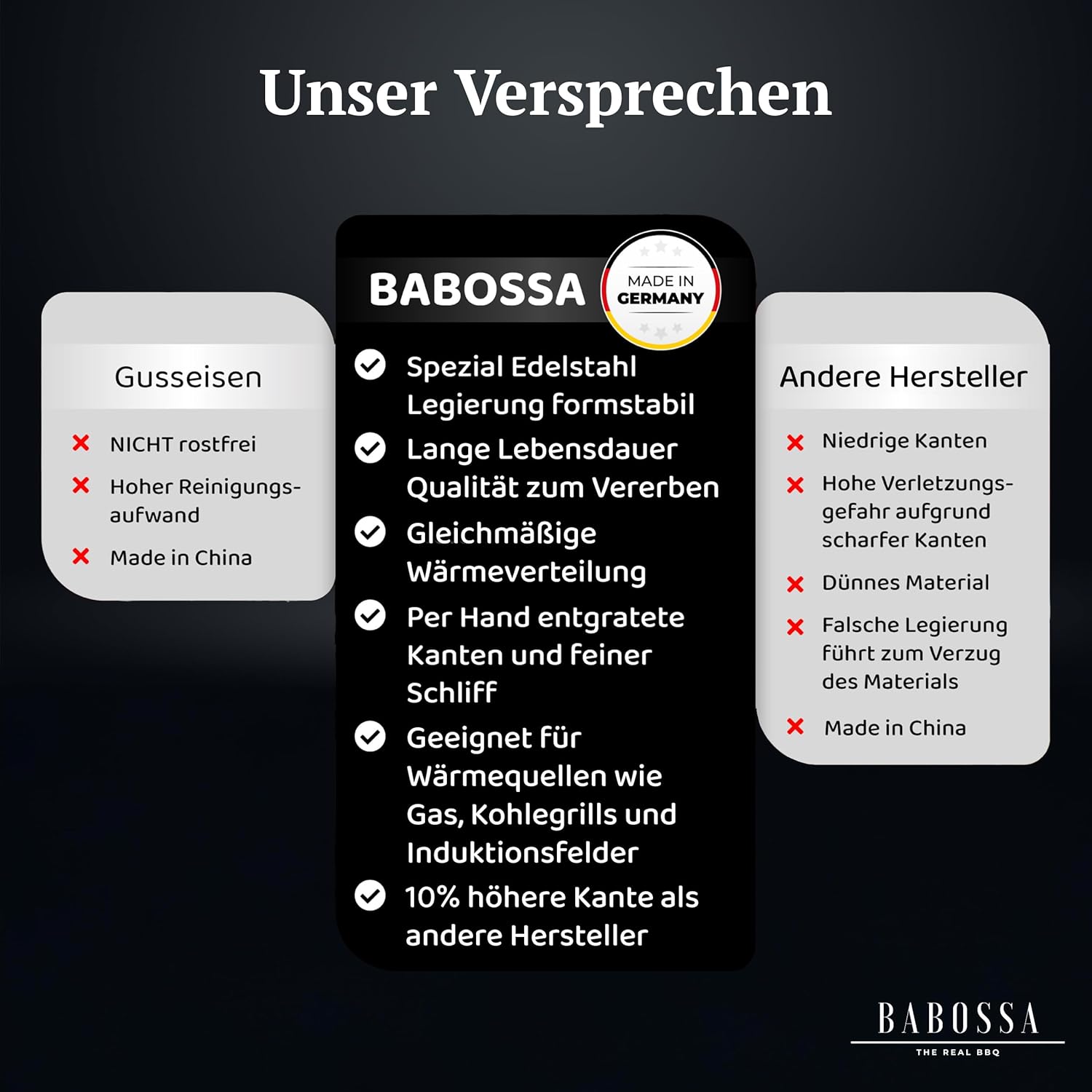 - VIELSEITIGE GRILLMÖGLICHKEITEN FÜR NAPOLEON ROGUE: Die BABOSSA Einsatzpfanne für Napoleon Rogue Modelle eröffnet neue kulinarische Horizonte auf deinem Grill. Diese hochwertige Grillwanne aus rostfreiem V2A Edelstahl mit 4mm Stärke und Griffen ist