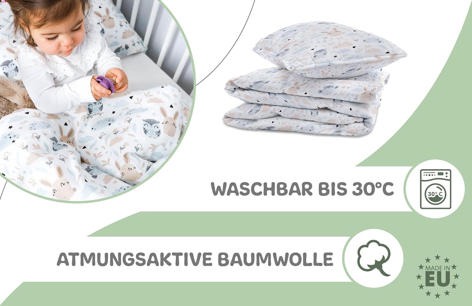 - Qualität dank handarbeit: babybettwäsche set mit praktischem reissverschluss ist sehr ästhetisch verarbeitet. Hübsche muster in sanften farben schaffen eine ruhige atmosphäre.