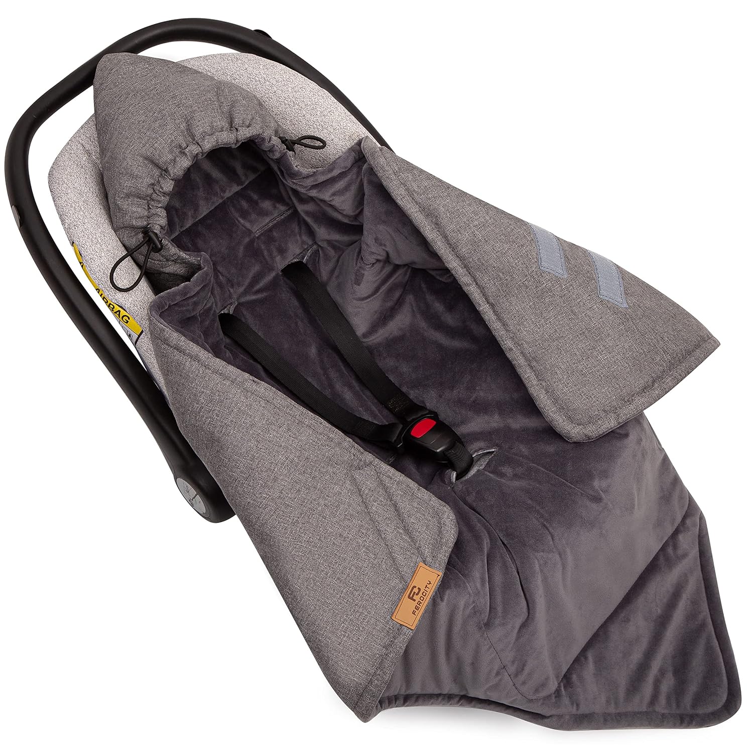 • Passt perfekt zu Kindersitzen mit 3-Punkt-Gurt. Besitzt zwei Klettverschlüsse. Im oberen Teil befindet sich eine Kapuze mit Kordelzug - sie können also den Kopf des Kindes zusätzlich vor Kälte und Wind schützen. Grosse 85 x 122 cm.