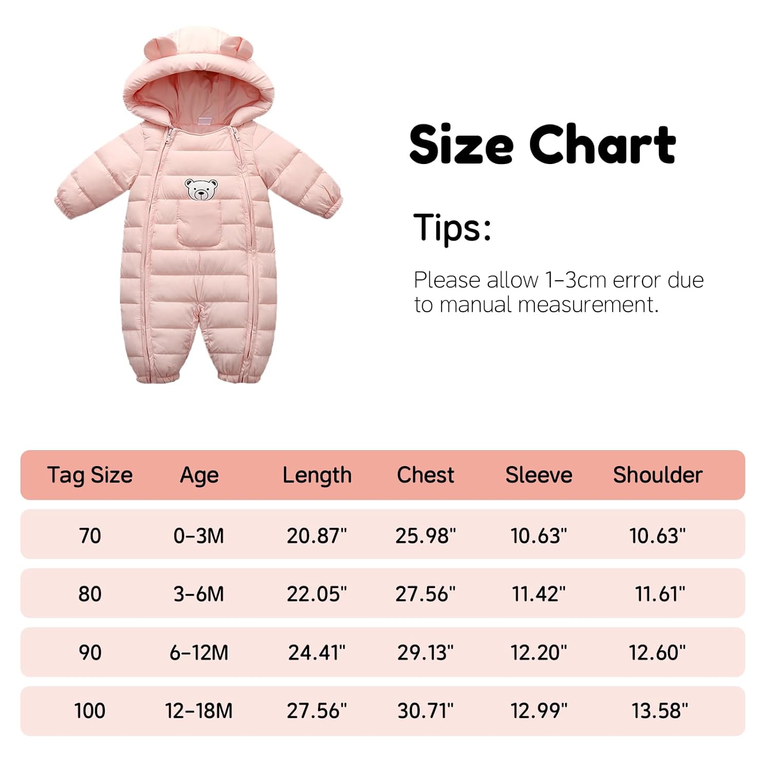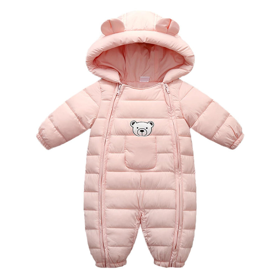 - Baby-Kapuzen-Schneeanzug mit niedlichem Bärenmuster auf der Vorderseite. Geeignet für Babys von 3-18 Monaten.