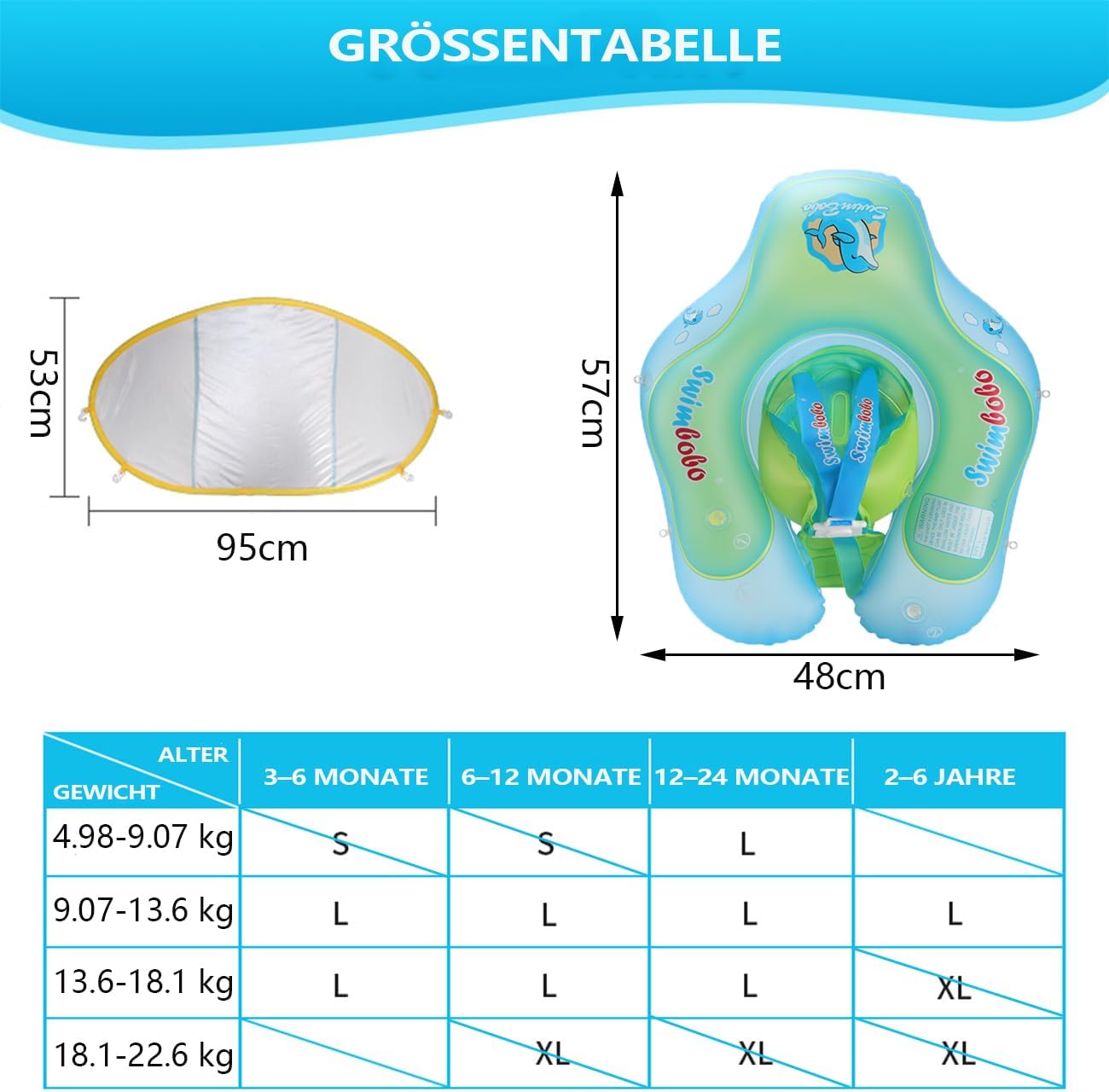 • 👍✅【Abnehmbarer Baldachin】 Der Babyschwimmer fĂŒr den Pool ist mit einem atmungsaktiven und abnehmbaren UPF50 + -Sonnenschutz ausgestattet, der die Haut des Babys vor der Sonne schĂŒtzt und die Sommerzeit jederzeit und ĂŒberall geniessen lĂ€sst.