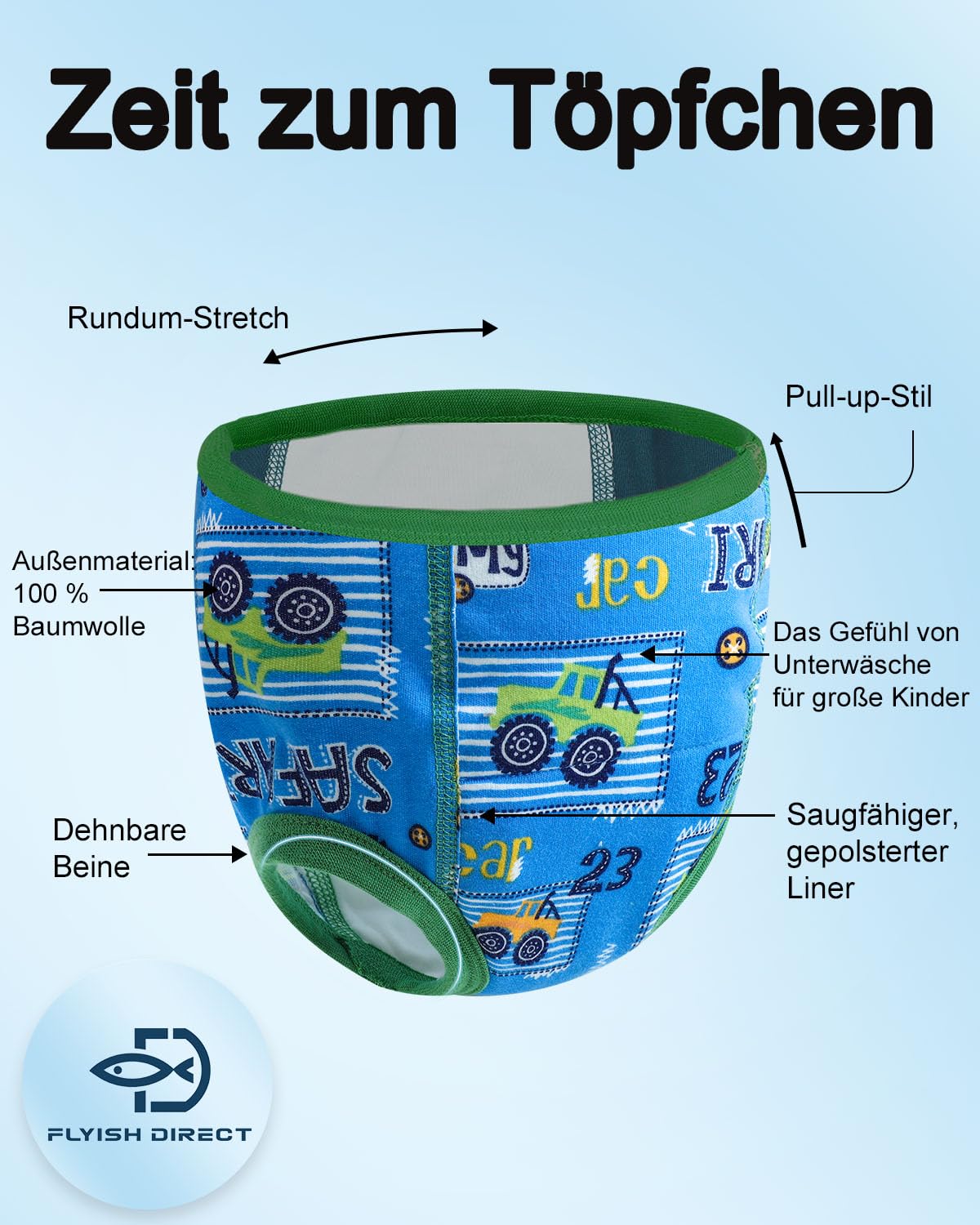 - Elastisches Design: Um sich besser an den Körper des Kindes anzupassen, ist diese Töpfchentraining Unterwäsche mit einem elastischen Bund und Beinlöchern ausgestattet. Dieses Design sorgt dafür, dass die Töpfchen Trainingshose bequem zu tragen ist