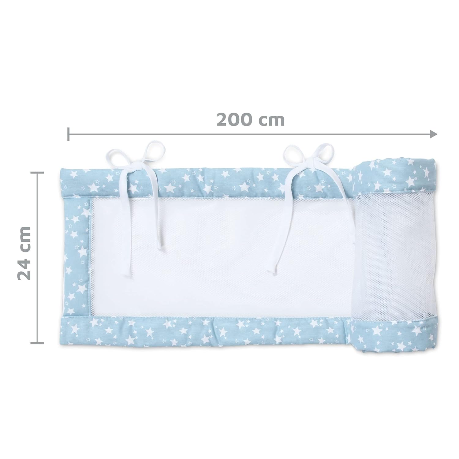 - SCHÜTZEND – Der Mix aus mit weichem Vlies gefüllter Baumwolle und dem Mesh Gewebe sorgt dafür, dass Ihr Liebling die Arme und Beine nicht zwischen die Holzstäbe strecken kann
