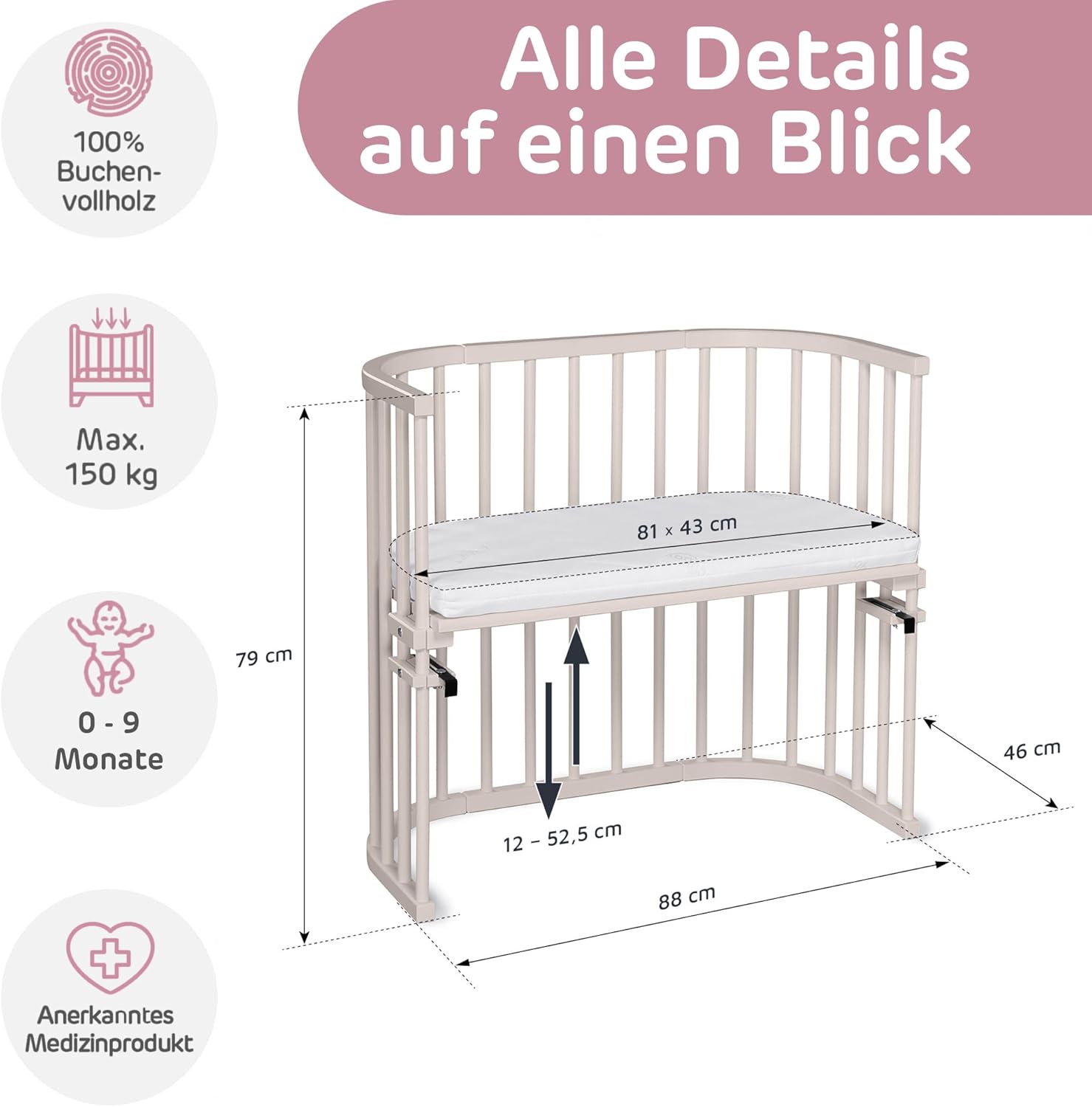 - NACHHALTIG & SICHER – babybay ist bis 150 kg belastbar und lässt sich durch die spezielle Befestigung sicher am Elternbett fixieren. Das massive, antibakterielle Buchenholz stammt aus heimischen Wäldern. Alle Lacke sind schadstofffrei sowie