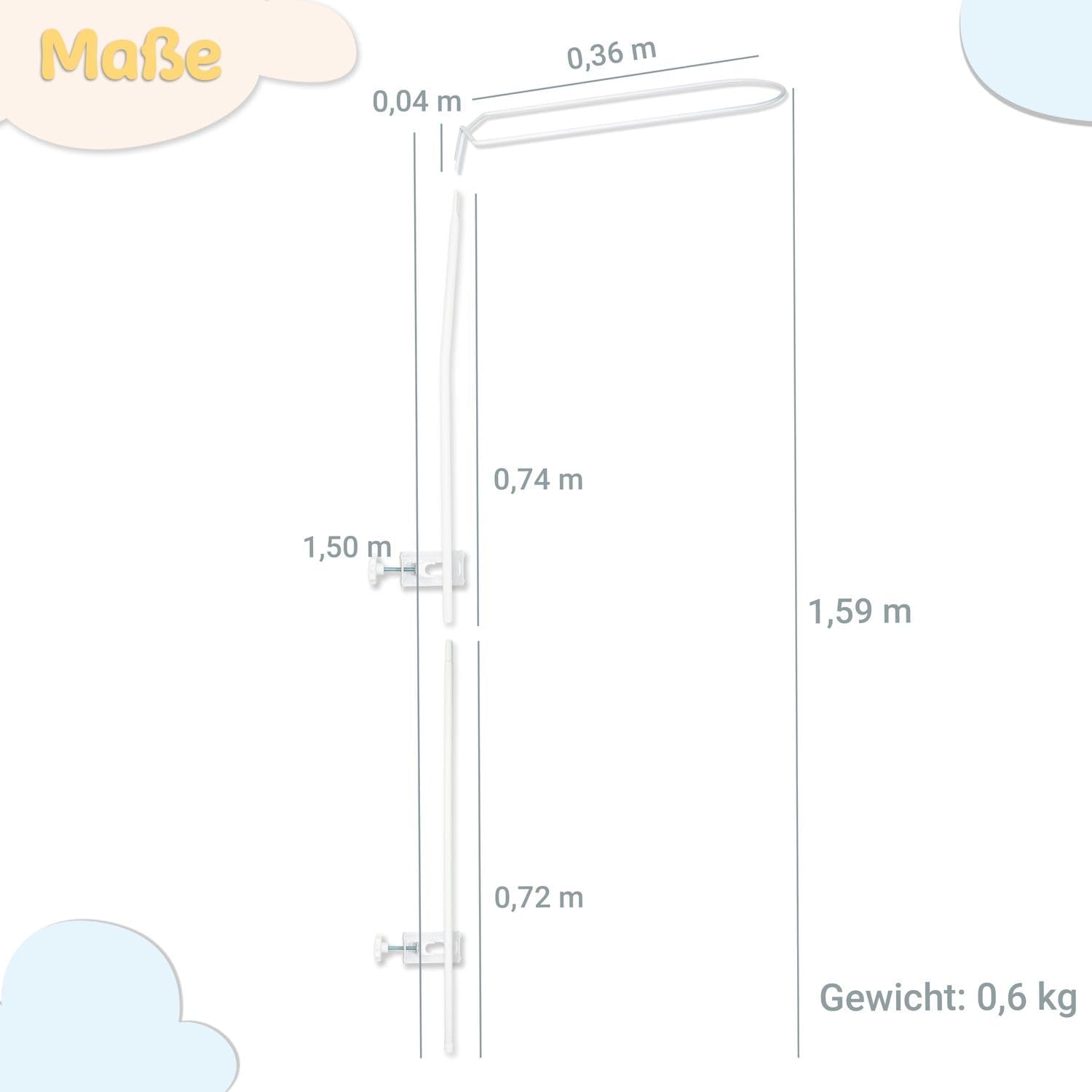 - ⭐ Made in EU - Unsere Himmelstange wird aus hochwertigem Metall innerhalb der EU gefertigt. Sie entspricht allen EU-Standards und ist somit sicher für Ihr Baby!
