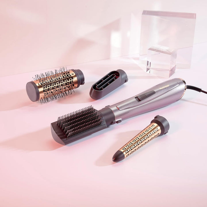 - 4 Aufsätze: glättende paddle Brush, 50mm Bürsten Aufsatz für Volumen, konisch geformter Locken Aufsatz, trocken Aufsatz