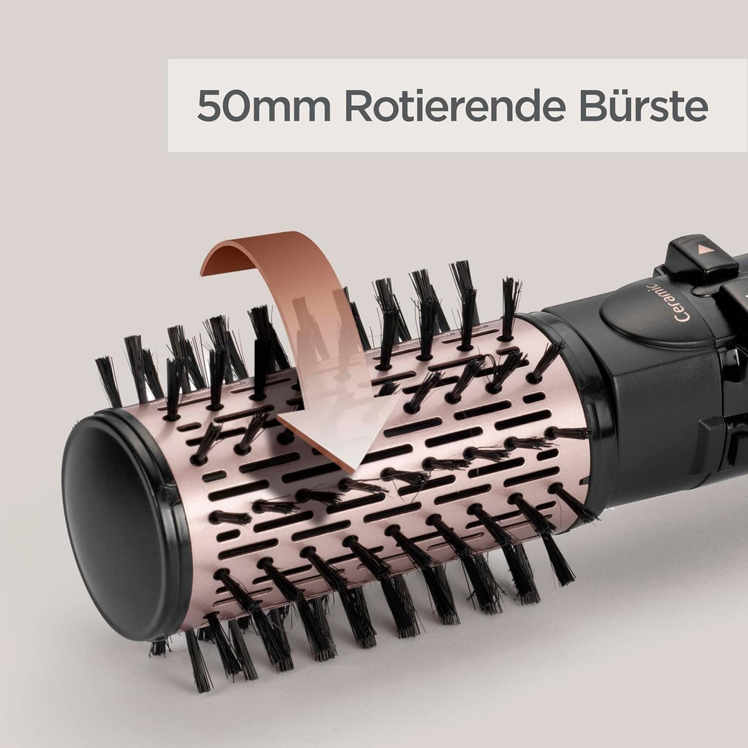 - 4 vielseitige Aufsätze: 50mm rotierender Bürstenaufsatz für Volumen, Glättbürste für geschmeidiges Haar, 20mm Bürste ideal für kurzes Haar und Ponys, Föhndüse zum Trocknen