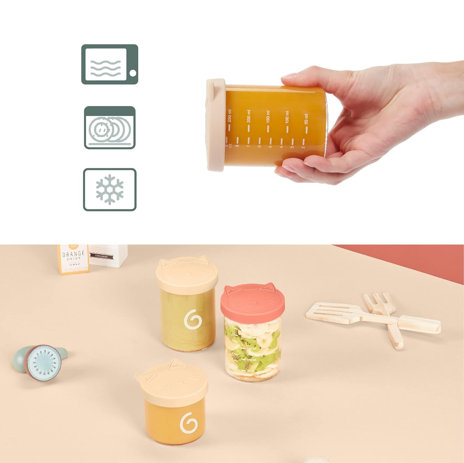 • Praktisch & auslaufsicher: die Behälter für Babybrei eignen sich dank hermetischem Silikondeckel mit Dichtung perfekt für den sicheren Transport. Über die Messskala können die Portionen an Babynahrung optimal gesteuert und abgelesen werden.
