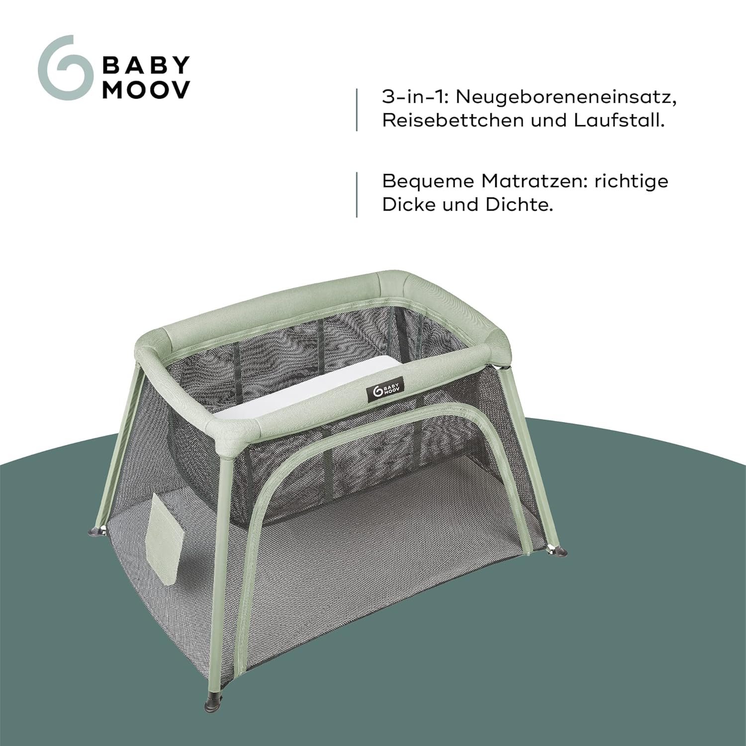- Spielbereich: Breite seitliche Öffnung, um das Reisebett in einen Spielplatz zu verwandeln - Netzgewebe, das für gute Belüftung sorgt