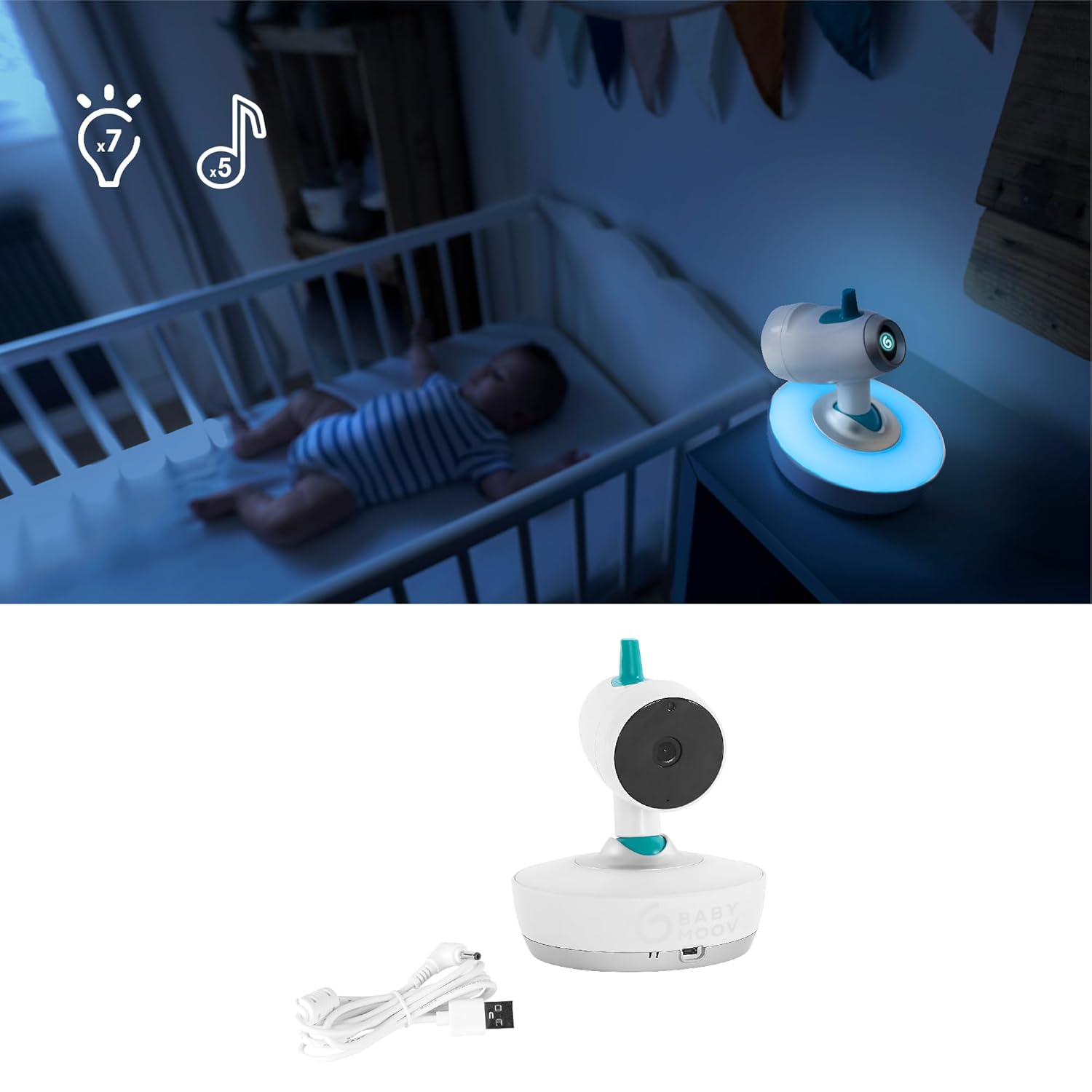 - Das YOO Moov besticht durch viele Zusatzfunktionen: mehrfarbiges Nachtlicht, Schlaflieder, Thermometer, Gegensprechfunktion, VOX, 300m Reichweite