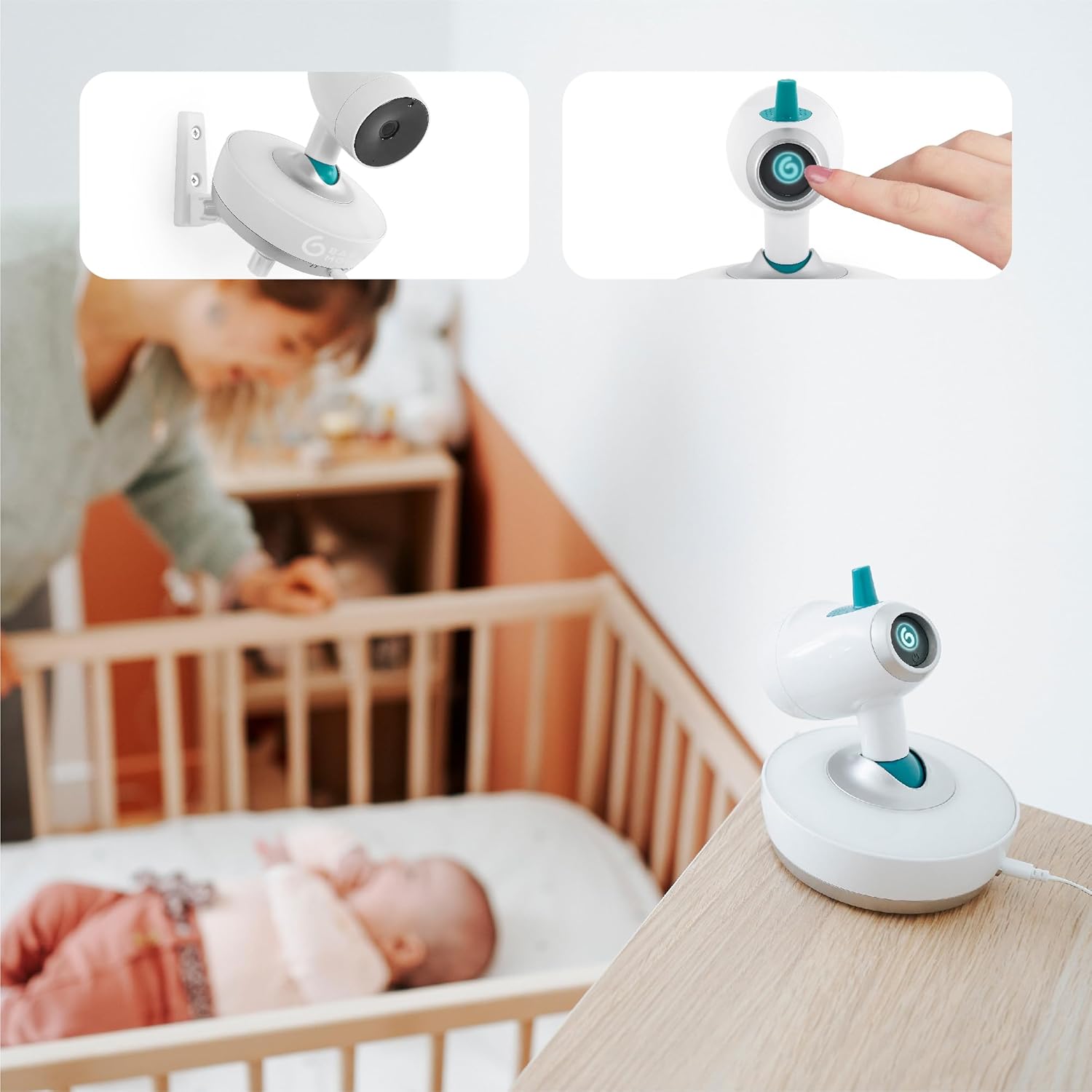 - 360°-Rundumsicht des YOO Moov: Die Kamera lässt sich per Fernsteuerung horizontal und vertikal einstellen – für einen optimalen Blickwinkel auf Ihr Kind