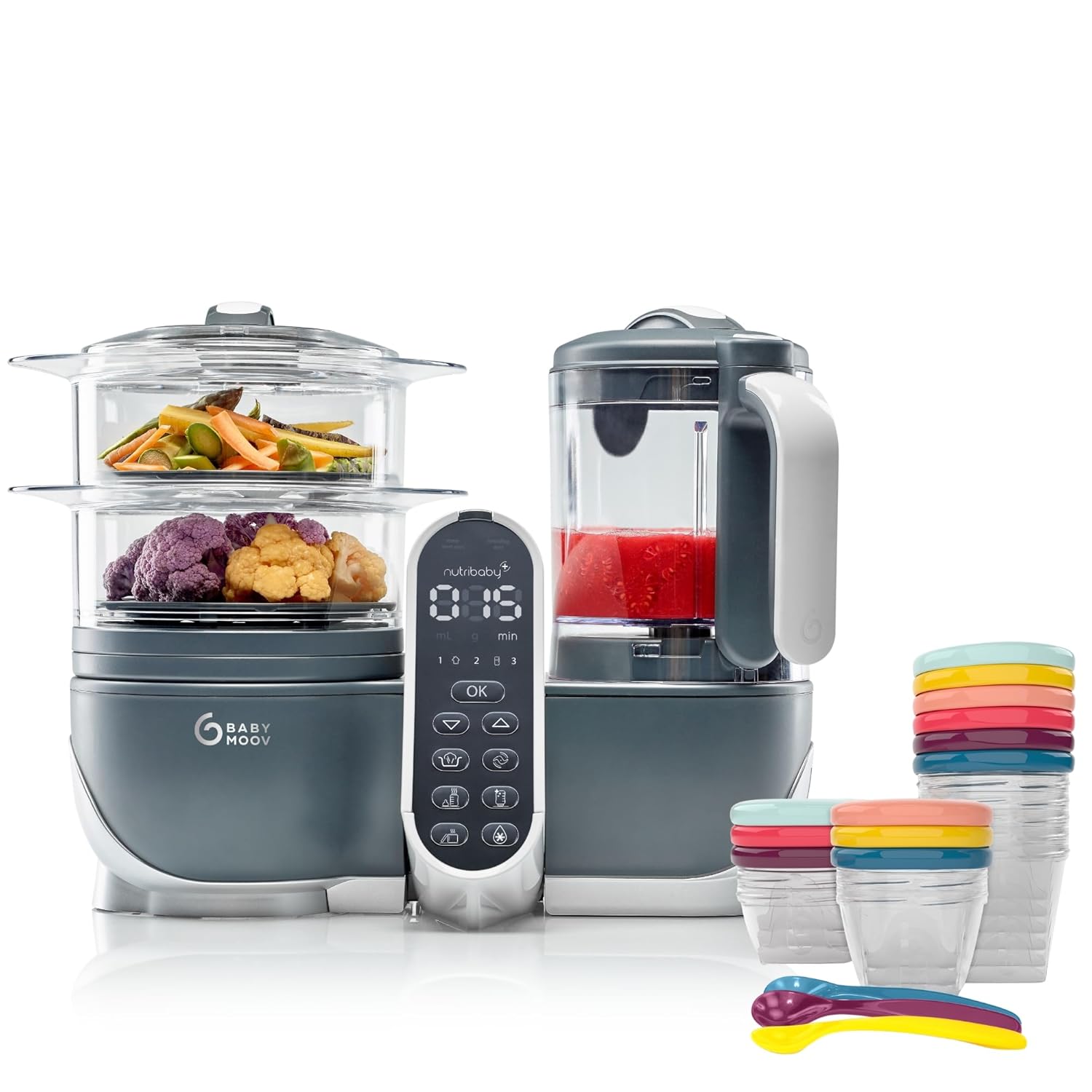 Babymoov Nutribaby Plus industrial grey Babynahrungszubereiter inkl. Babybols Aufbewahrungsbehälter-