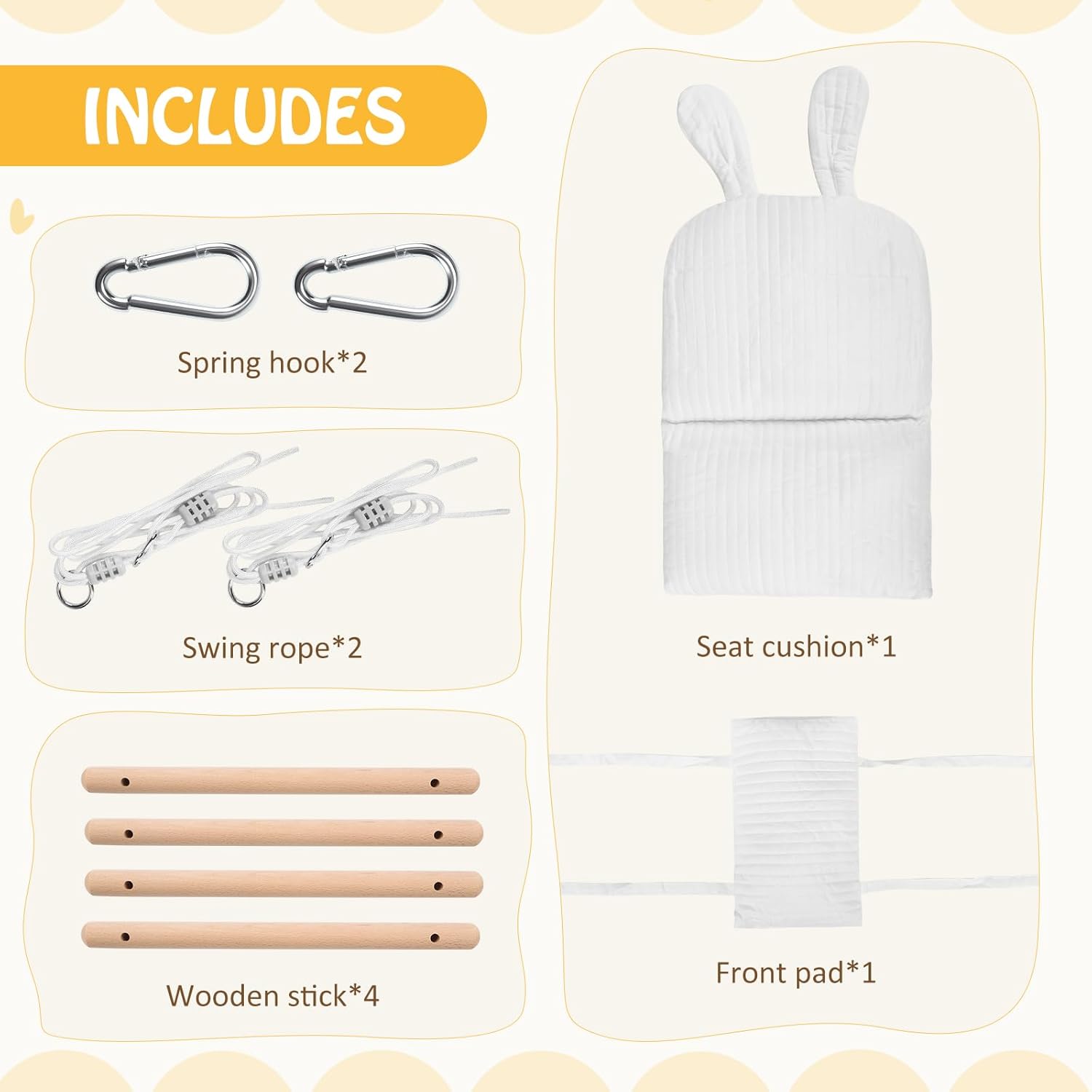 - 【Komplettes Zubehör】: kinderschaukel Beinhaltet 1 Leinwandsitz, 1 weiche Polsterung, 4 glatte Holzstangen, 2 Anti-Wear-Seile, 2 Baumgurte und 2 abschliessbare Karabiner, um verschiedene Anforderungen an den Innen- und Aussenbereich zu erfüllen