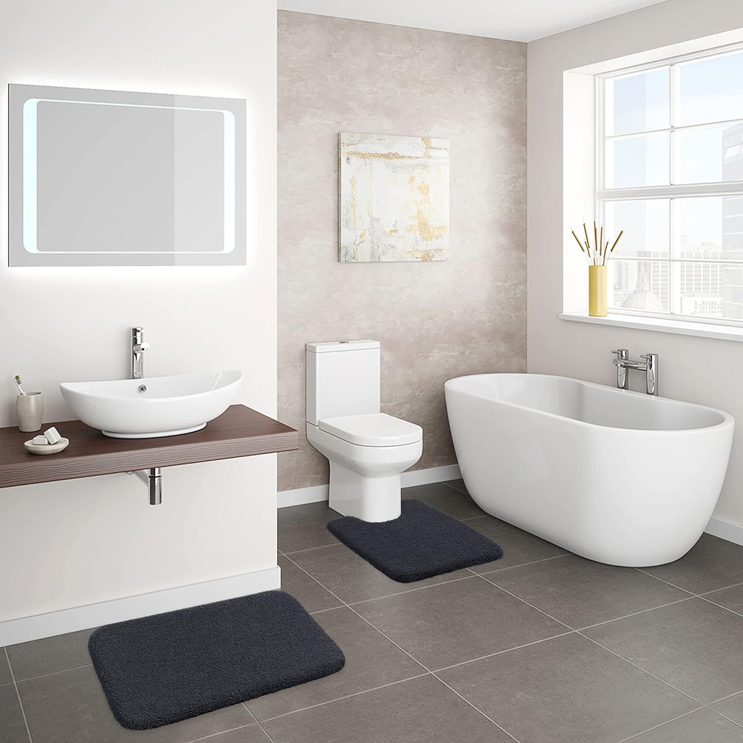 - 🏠DYNAMISCHES DEKOR🏠 - Die elegante Bodenmatte verleiht Ihrem Badezimmer ein schönes, reichhaltiges Dekorationselement und bringt charmantes und fantastisches Gefühl für Ihre Familie. Bescheidene Unifarben und mehrere Grössen lassen sich leicht