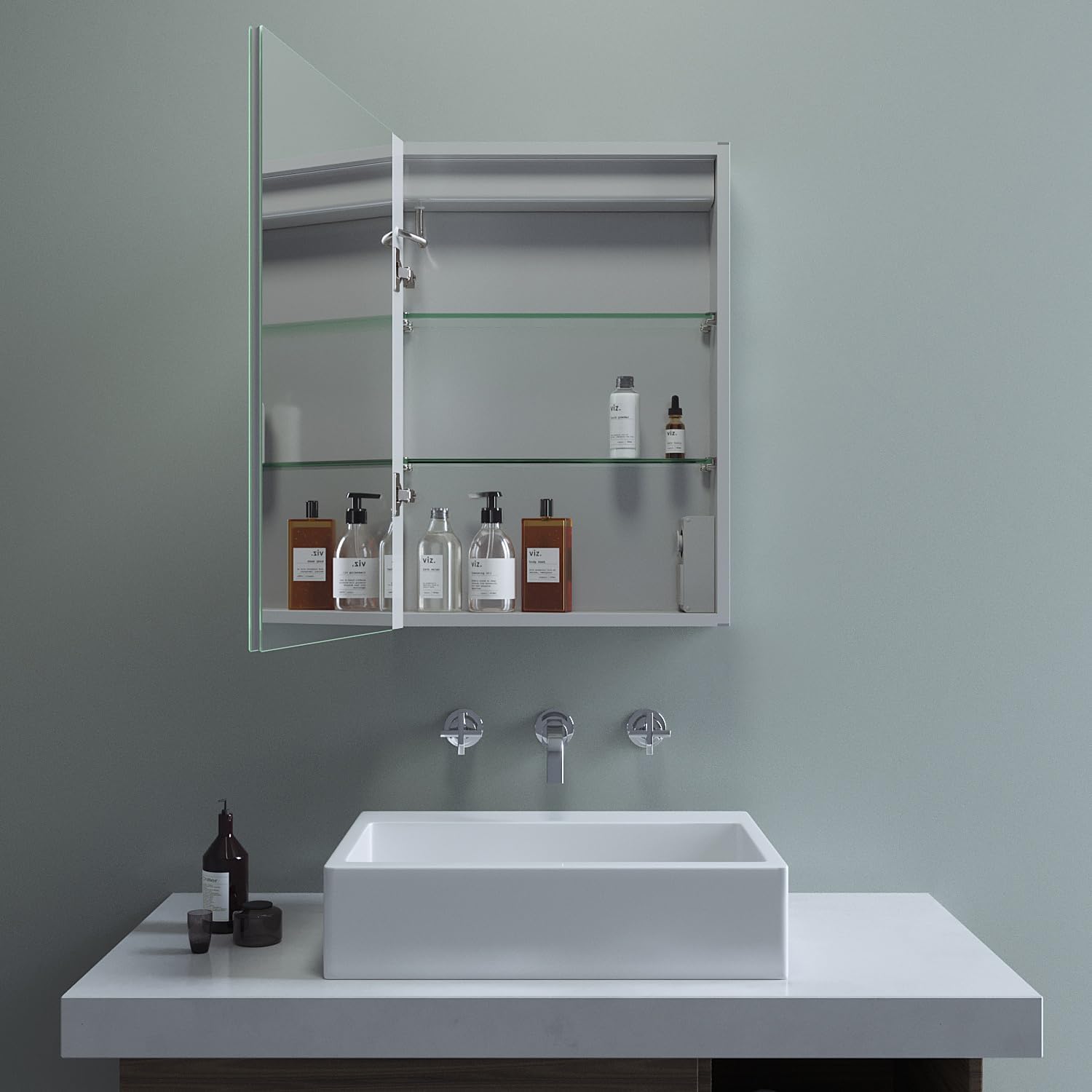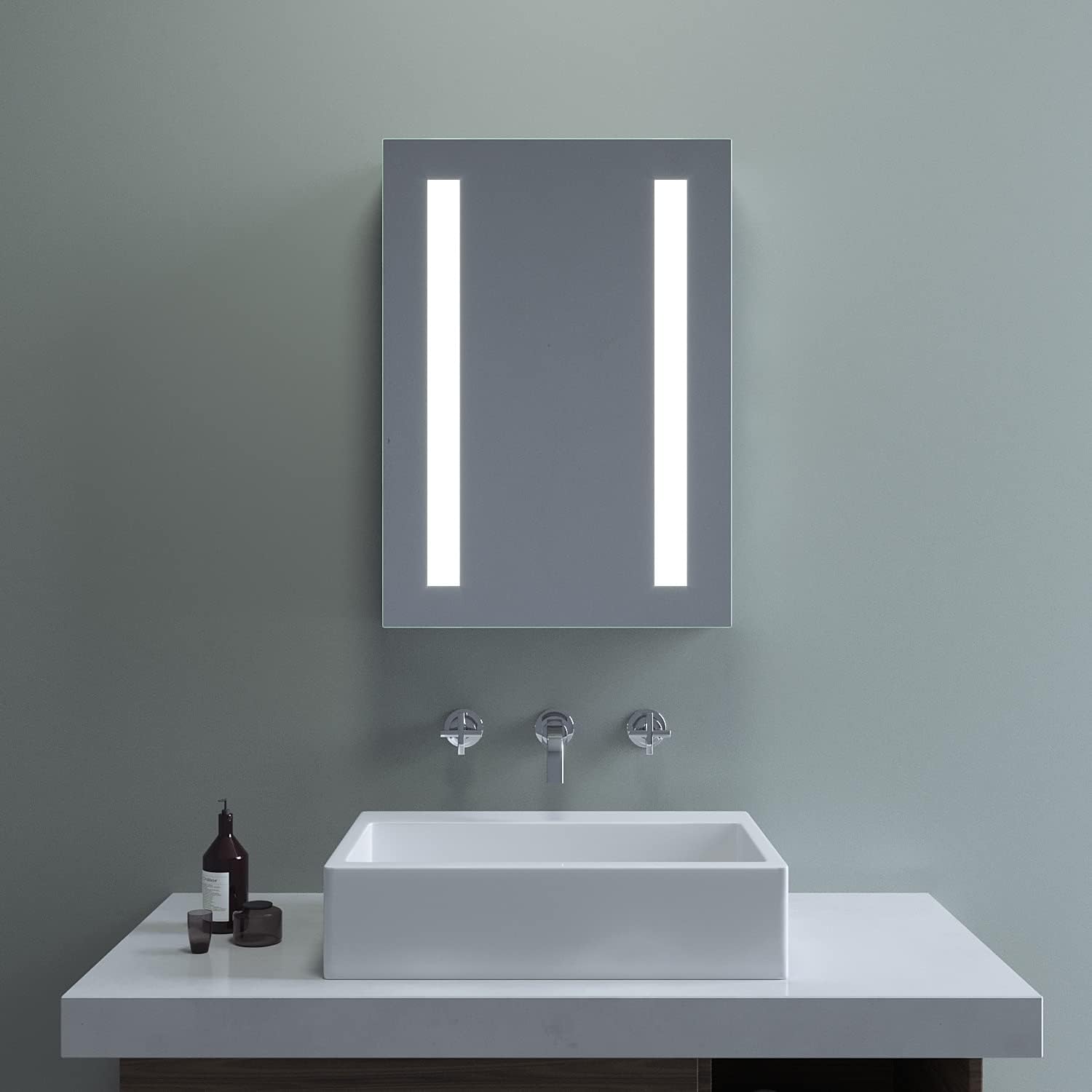- ✔【Mit LED-Beleuchtung】Unser Badezimmerspiegelschrank ist mit Hi-Tech SMD2835 LED Band ausgestattet. Kaltweisse Lichtfarbe 6400 Kelvin. Umweltschonende Beleuchtung dank hoher Lichtausbeute, hohe Energieersparnis bis zu 90 % im Vergleich zu