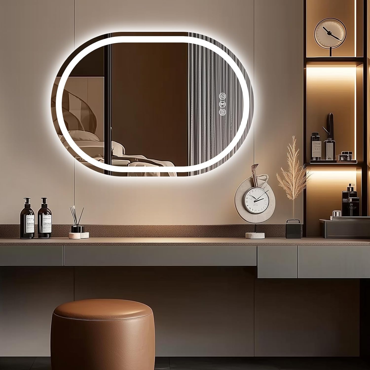 - [Individuelles Lichterlebnis] Badezimmerspiegel mit beleuchtung mit drei unterschiedlichen Farbmodi (warm 3500 K, natürlich 4500 K, kühl 6500 K) sowie einer Helligkeitsanpassung von 10 % bis 100 % per Touch-Sensor können Sie das Licht genau Ihren