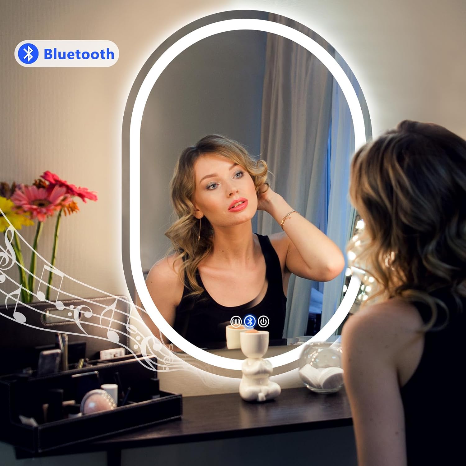 - [Singender Spiegel & Entnebelungsfunktion]Unser wandspiegel mit integrierter Bluetooth-Funktion verwandelt Ihr Badezimmer in eine persönliche Wellness-Oase. Geniessen Sie Ihre Lieblingsmusik während des Badens und erleben Sie eine entspannte