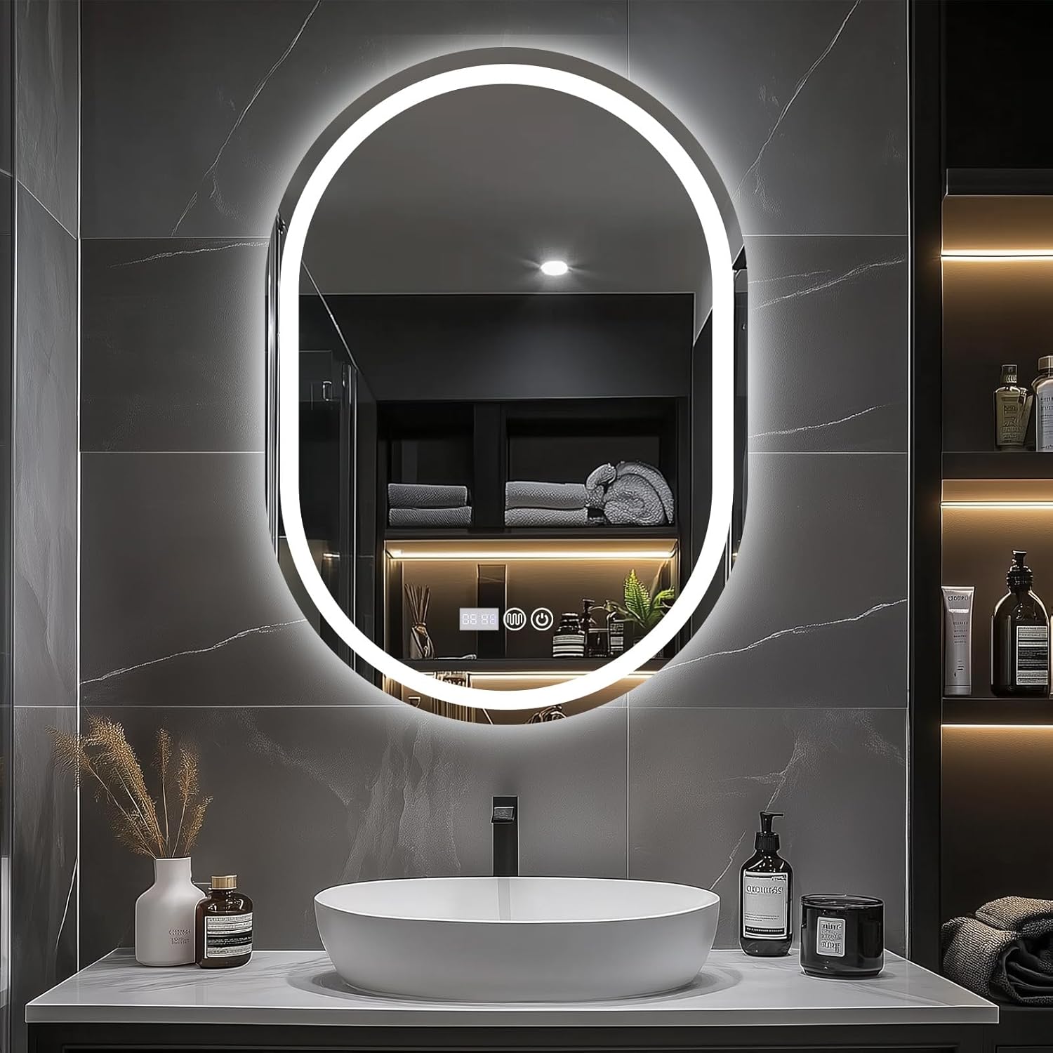 - [Unverwechselbares Desig] Der ovale, rahmenlose Rolltreppenform-Spiegel verleiht Ihrem Badezimmer einen modernen Touch mit seinen künstlerischen Linien. Dank der Möglichkeit, den Spiegel sowohl vertikal als auch horizontal aufzuhängen, passt er sich