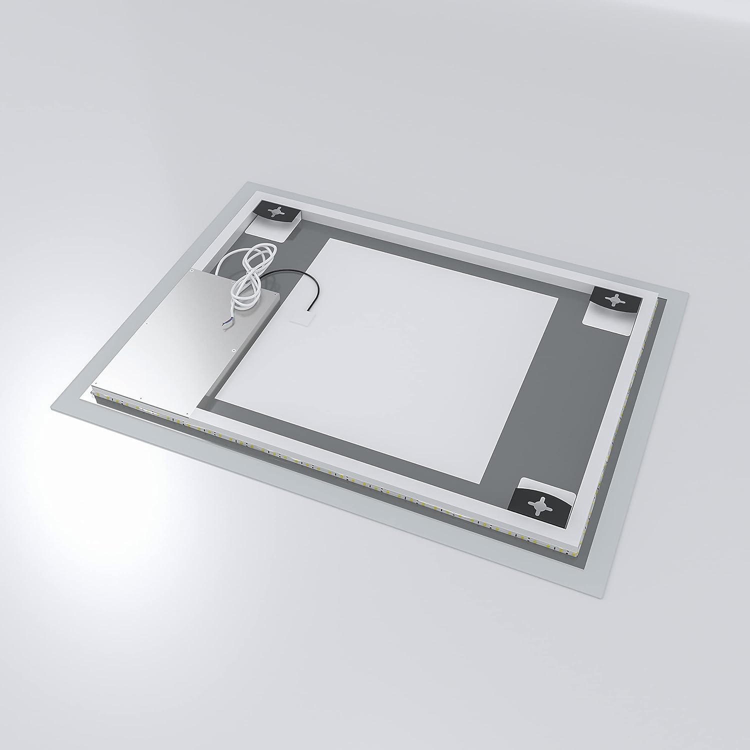 - 【Umweltschonende Beleuchtung】Unser Badspiegel ist mit Hi-Tech SMD2835 LED Band ausgestattet. Kaltweisse Lichtfarbe 6400 Kelvin. Umweltschonende Beleuchtung dank hoher Lichtausbeute, hohe Energieersparnis bis zu 90% im Vergleich zu Glühlampe. Kein Leuchtmitteltausch nötig dank hoher Lebensdauer von bis zu 50.000 Stunden.