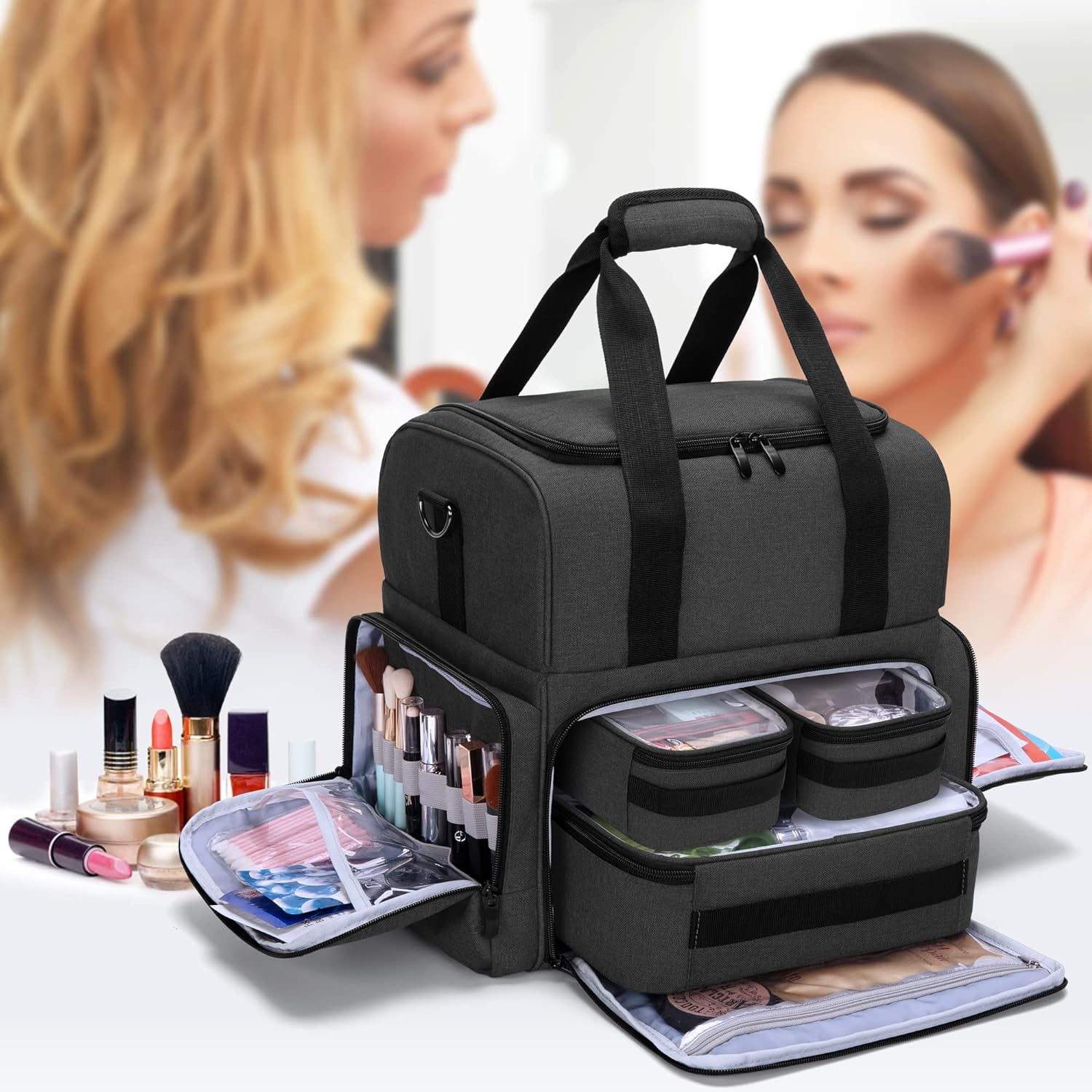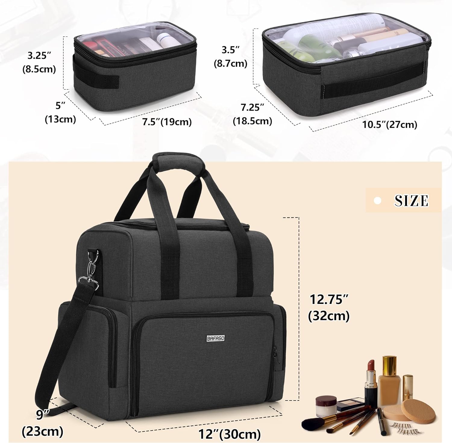 - UNTERE EBENE: Die untere Schicht der Make-up-Tasche gibt 3 herausnehmbare transparente Taschen, die die Kosmetika ordentlich und organisiert halten können. Das transparente Design ermöglicht Ihnen, gewünschte Artikel im Handumdrehen zu finden. 1
