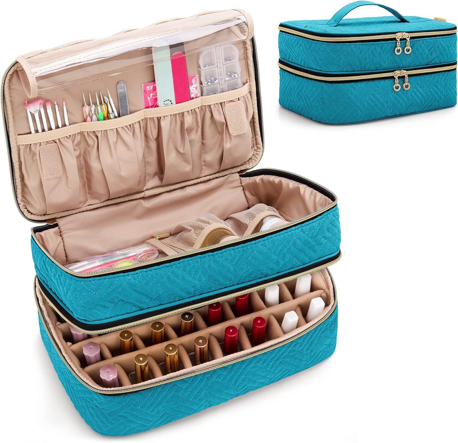 - GROssER STAURAUM: Die obere Schicht bietet vielseitige Taschen zur Aufbewahrung von Nagelpinsel, Nagellackentferner und anderen Nagellack Zubehör.