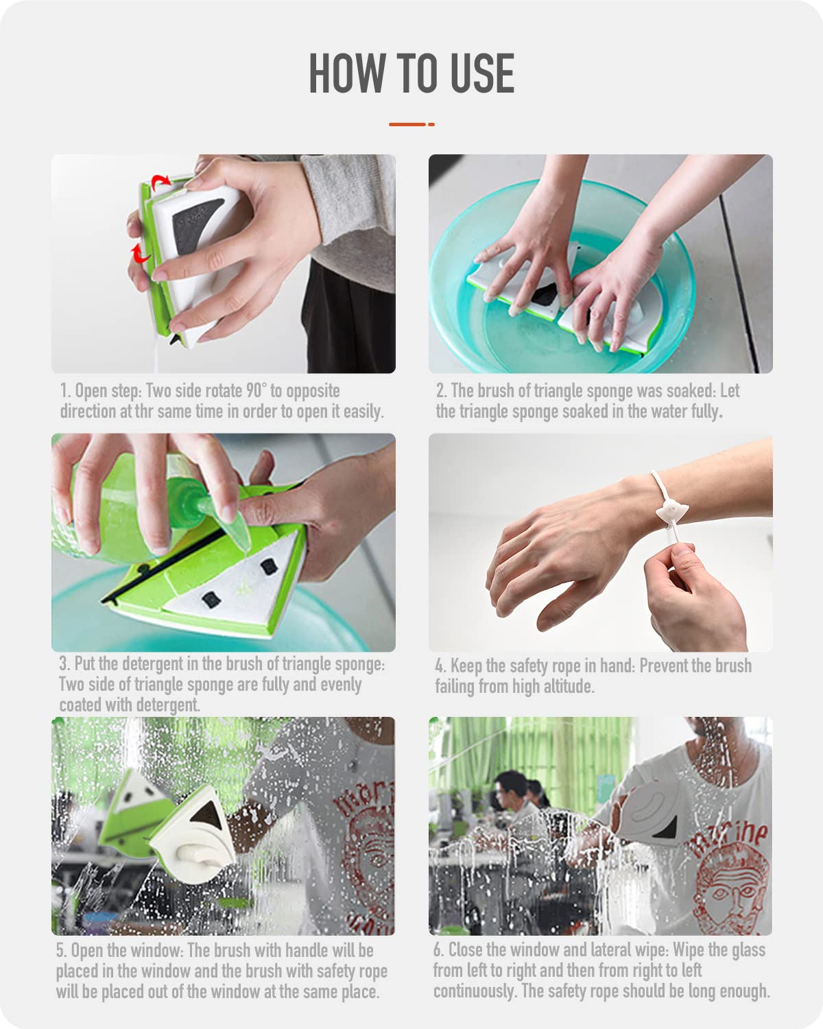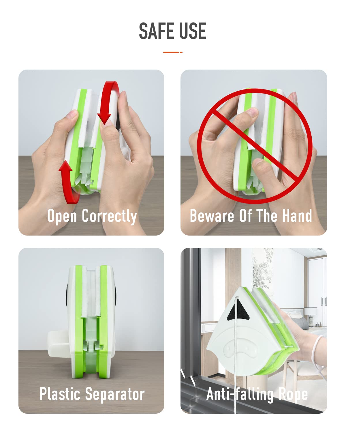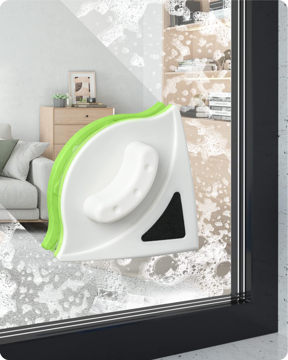 - Reinigen Sie die Doppelseite des Fensters gleichzeitig: Bleiben Sie im Raum, um das Innen- und Aussenfenster gleichzeitig zu reinigen, weil das magnetische Design ist. Ideal für Fenster, Gewächshäuser, Autoscheiben, Wintergärten usw.