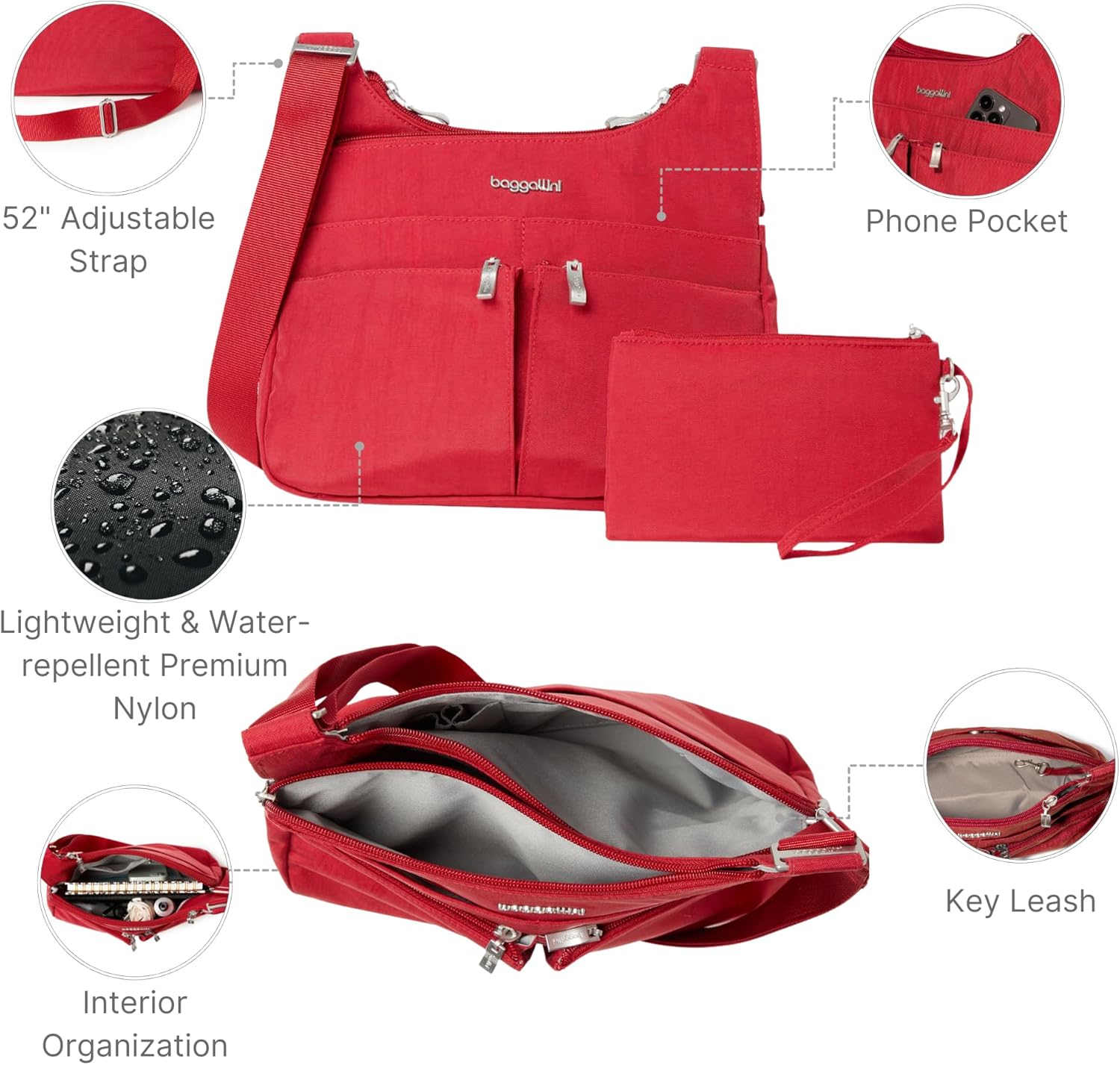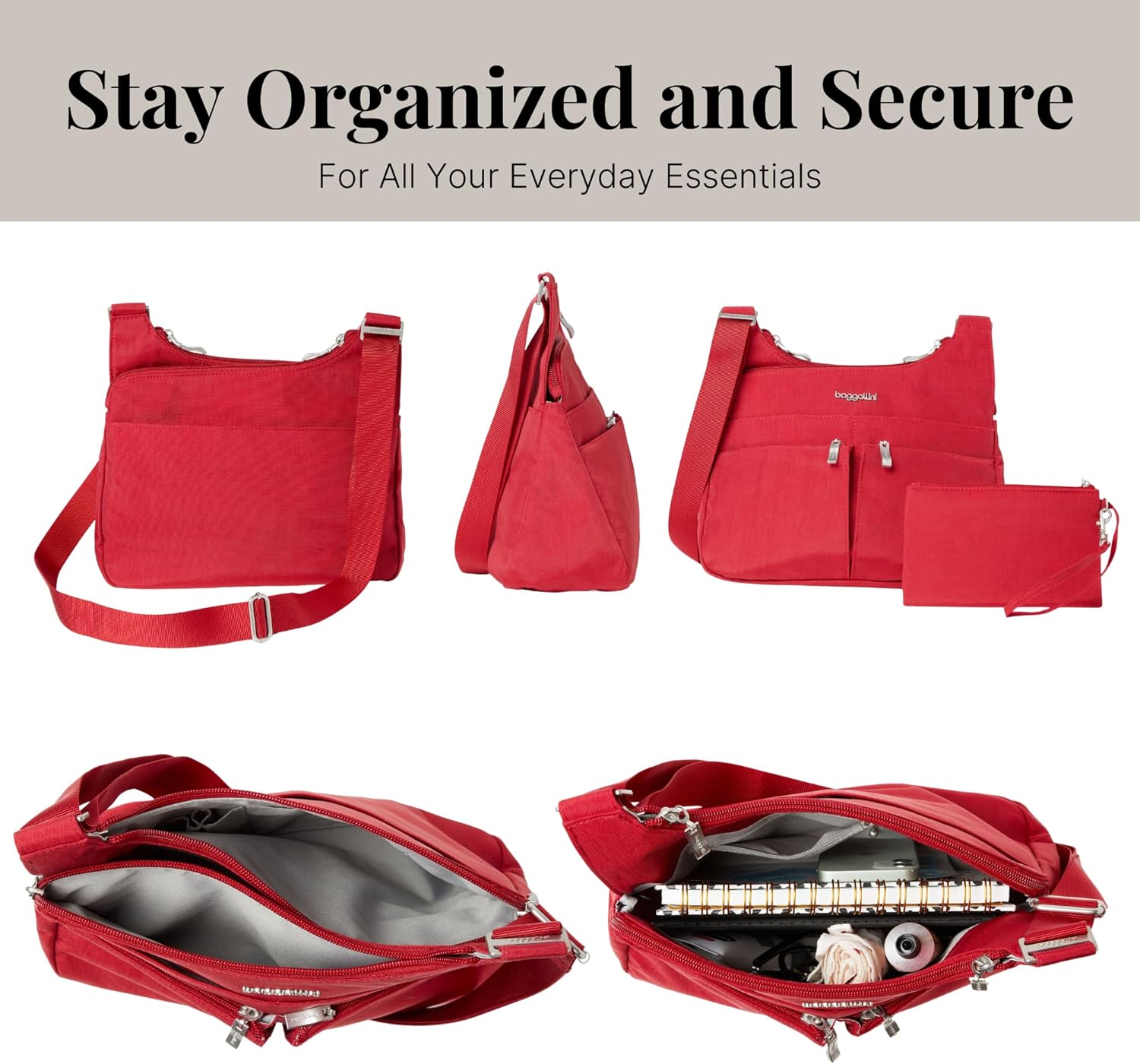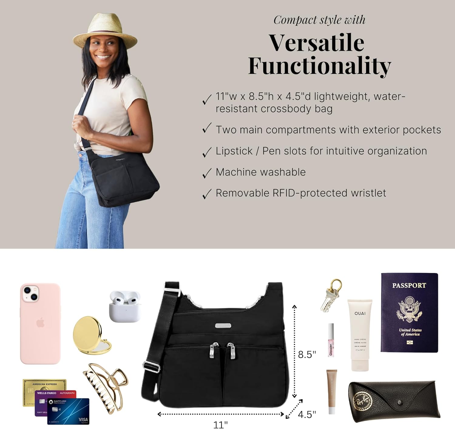 PRODUKTBESCHREIBUNGEN Diese Umhängetasche erweitert sich an der Unterseite, sodass Sie alles halten können, was Sie brauchen. Reissverschlussfächer, die in verschiedene Richtungen zeigen, erleichtern die Organisation. Aussentaschen für neuere Handys.