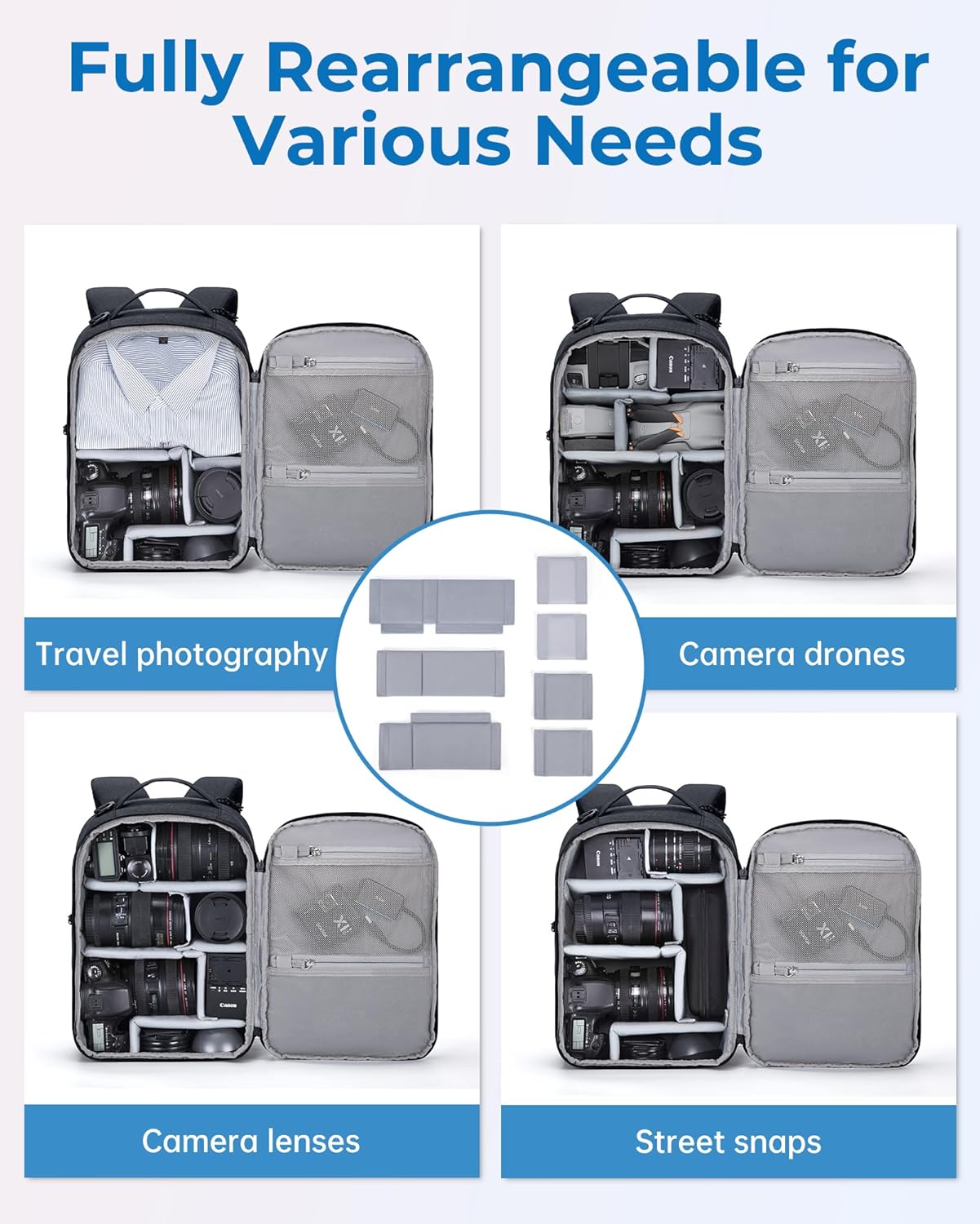 - Reisefreundliche Eigenschaften:Reisekamera Laptop-Rucksack entspricht den Grössenanforderungen der Fluggesellschaften.Die Rückentasche des Rucksacks lässt sich bequem über den Griff eines Rollkoffers schieben, so dass Sie die Hände frei haben und