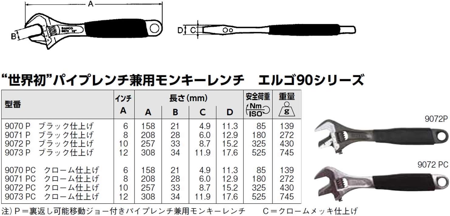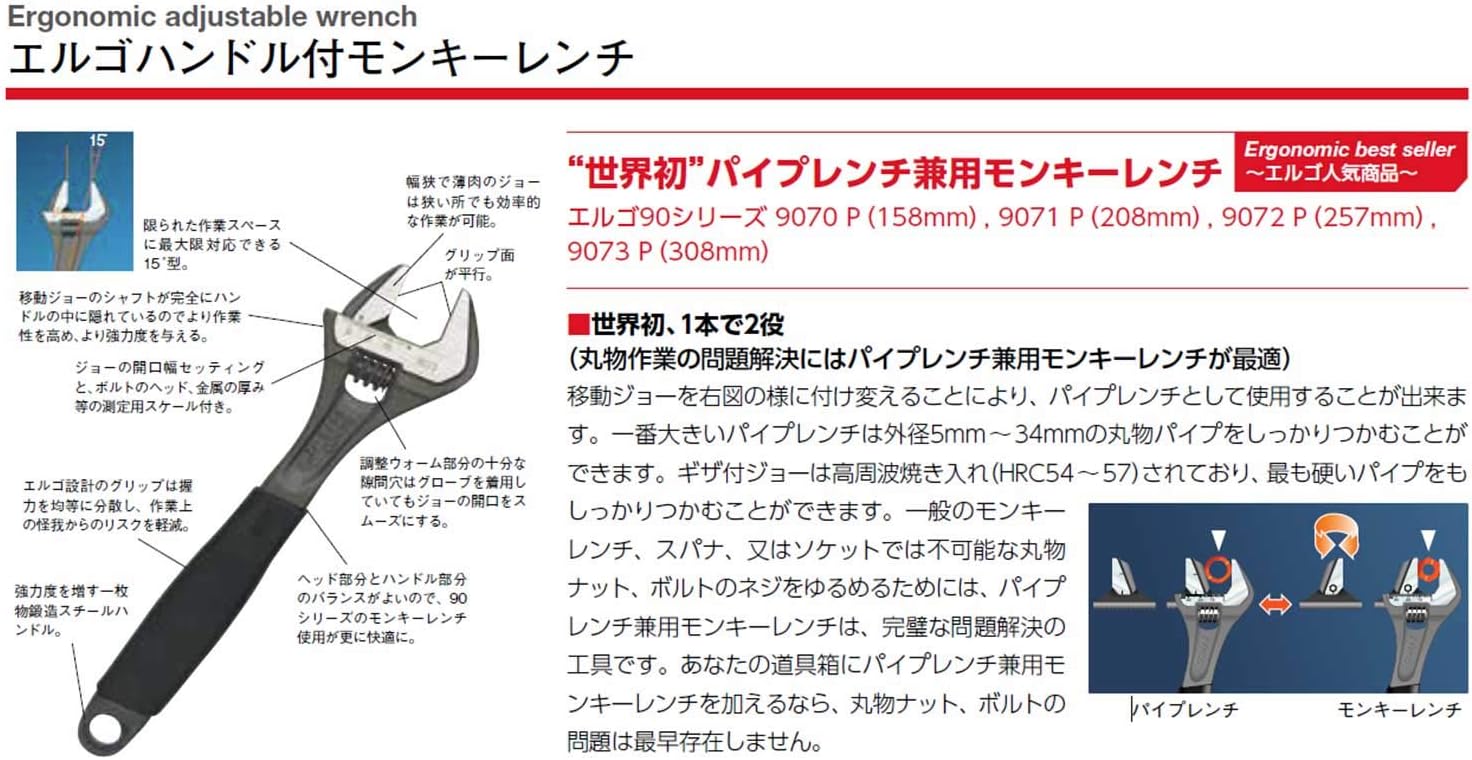 Bahco-Rollgabelschlüssel, Serie 90, umstellbare Backe, Verchromt, 8", 9071PC