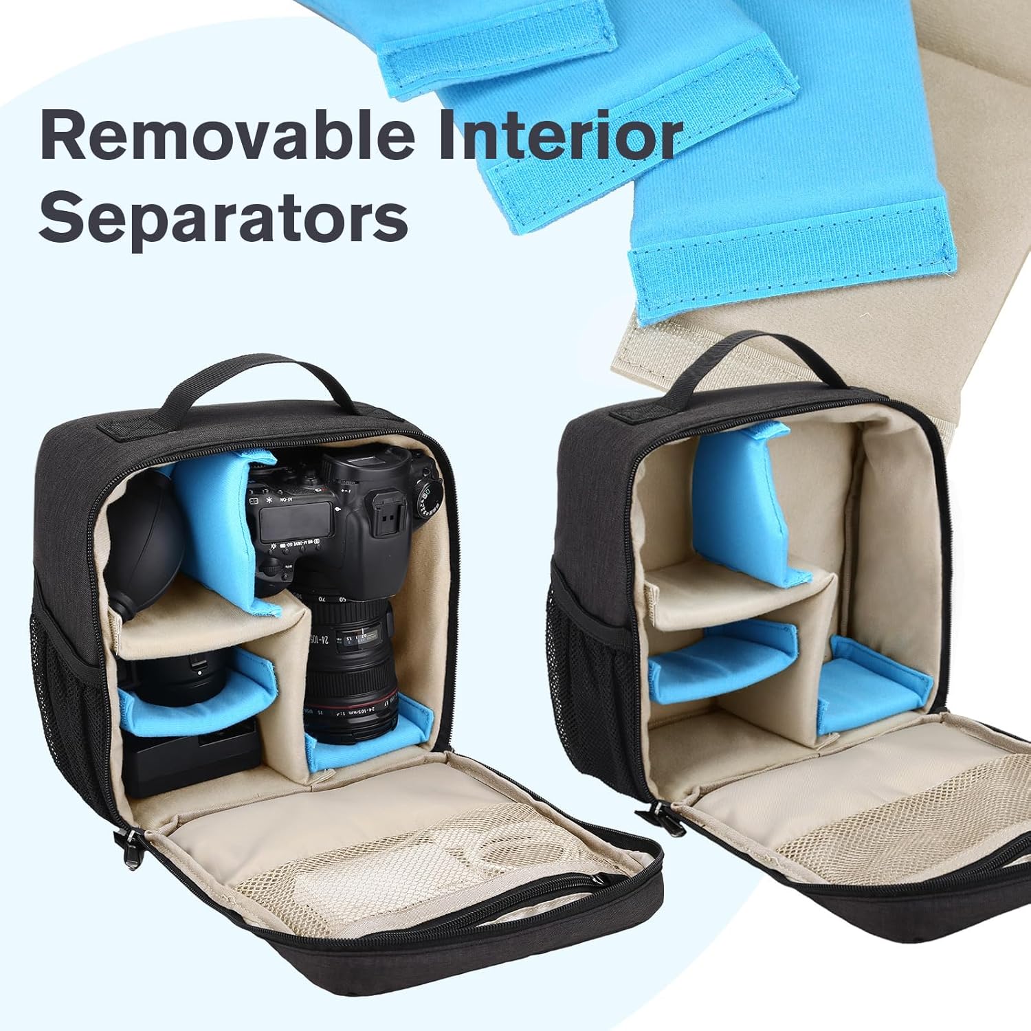 - 【Abnehmbare Gepolsterte Trennwände】: Mithilfe abnehmebarer Klett-Trennwänden können Sie nach praktischem Bedarf den Innenraum dieser Kameratasche verstellen. Der obere Deckel mit Doppelt-Reissverscluss erhöht Sicherheit und stellt sicher, dass