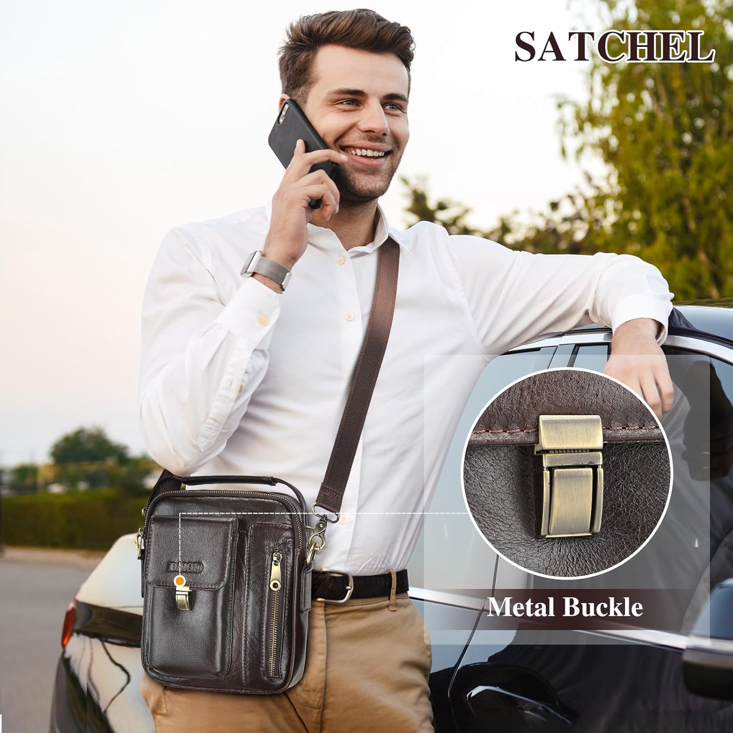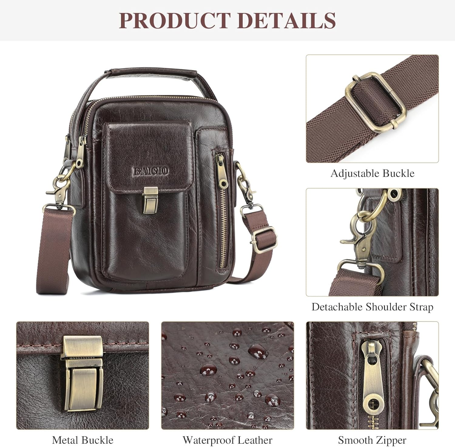 - 【Echtes Leder】: BAIGIO Herren-Umhängetasche besteht aus hochwertigem echtem Rindsleder mit strapazierfähigem Polyesterfutter. Die Hardwareteile bestehen aus einer Retro-Messinglegierung/gun-color-Legierung, die die Lederhandtaschen luxuriöser