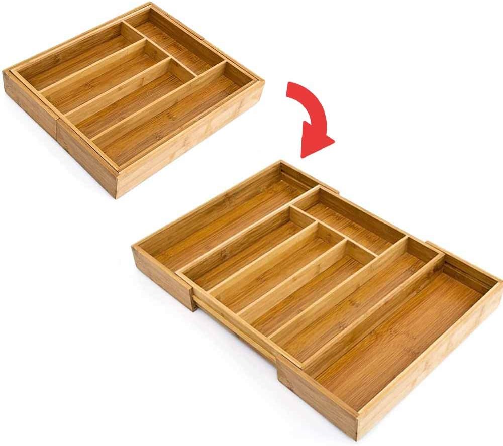- Der Besteckkasten von bakaji ist ausziehbar! Dadurch passt sie perfekt in Ihre Küchenschublade und bietet Ihnen zusätzlich 2 zusätzliche Fächer! Perfekt für die Aufbewahrung anderer Küchenutensilien.