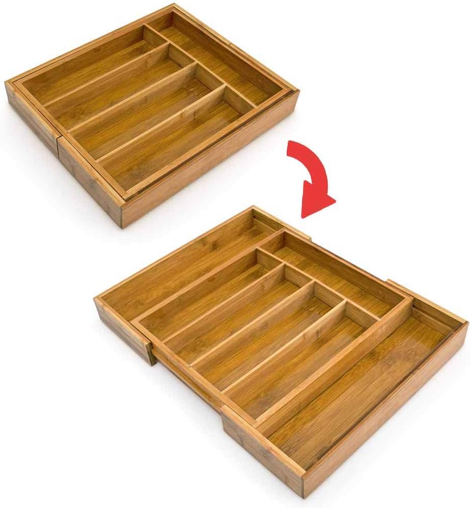 - Der Besteckkasten von bakaji ist ausziehbar! Dadurch passt sie perfekt in Ihre Küchenschublade und bietet Ihnen zusätzlich 2 zusätzliche Fächer! Perfekt für die Aufbewahrung anderer Küchenutensilien.