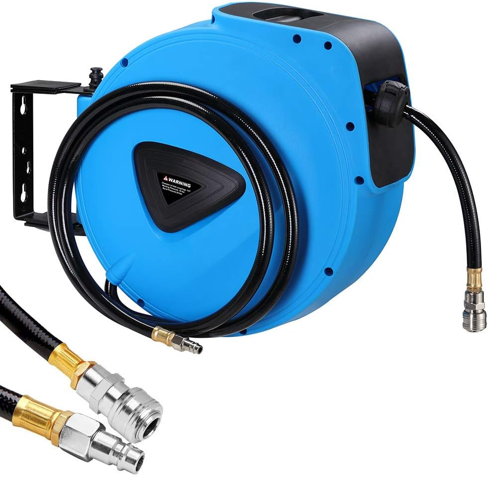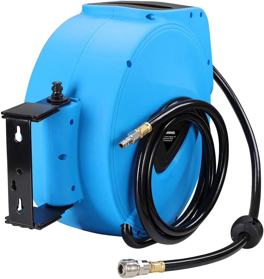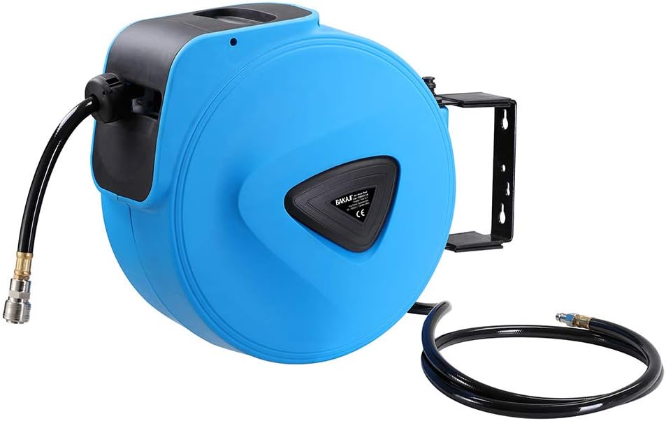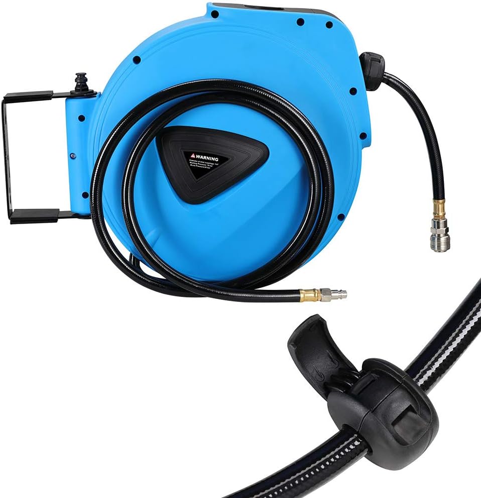 - Praktischer Selbstaufrollmechanismus: Mit dem Rücklaufsystem können Sie den Schlauch schnell und einfach zurückrollen, mit automatischer Verriegelung