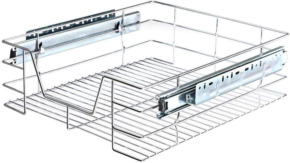 - Die Schublade ist komplett aus 5 mm dickem, verchromtem Edelstahldraht gefertigt, wodurch der Korb sehr robust und langlebig ist und eine maximale Traglast von 20 kg gewährleistet. Der Korb kann auch aus den Schienen herausgenommen werden, so dass Sie