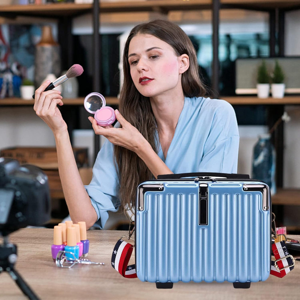 - Hochwertige Materialien: Tragbare Make -up -Beutel bestehen aus hochwertigen ABS -Materialien, sanft aber fest, was die Tragbarkeit erhöhen kann. Die glatte Oberfläche ist leicht zu reinigen und kann viele Jahre dauern.