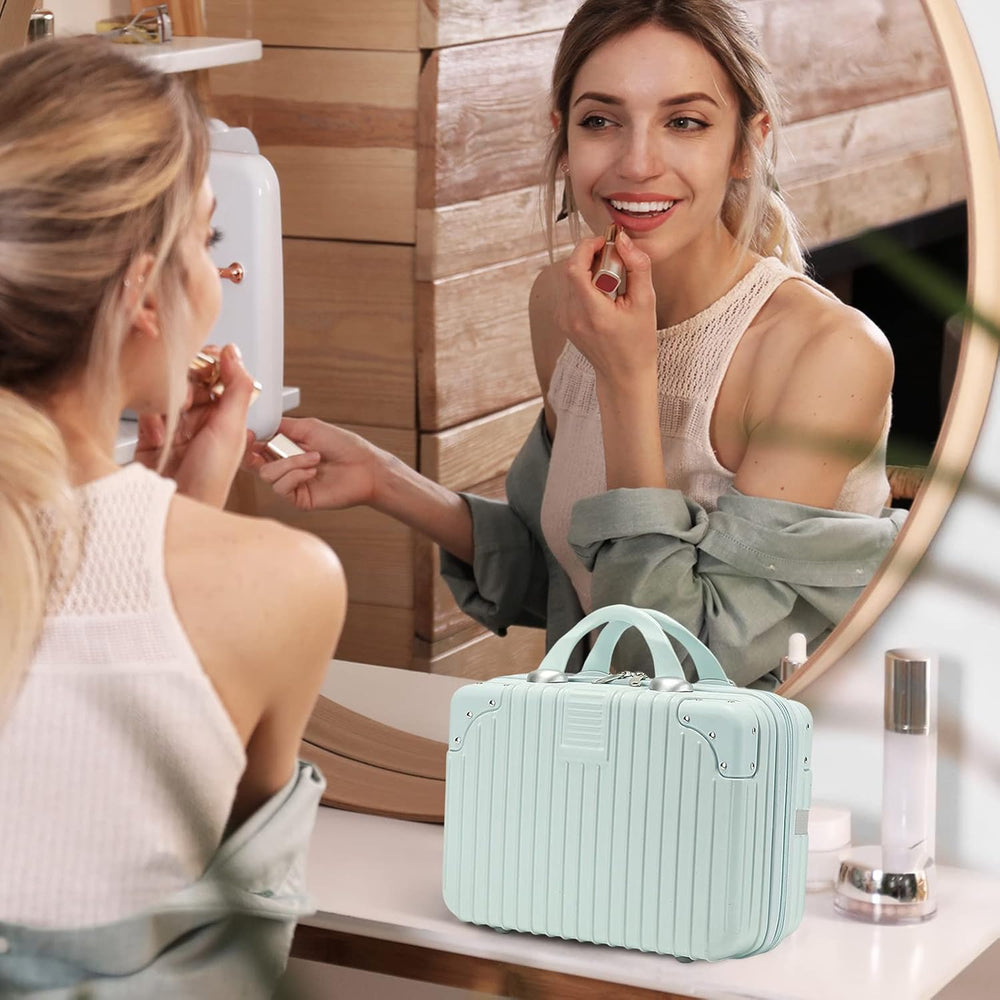 - HOCHWERTIGES MATERIAL: Die tragbare Kosmetiktasche besteht aus hochwertigem ABS-Material, das leicht, aber robust ist, um die Tragbarkeit zu erhöhen. Polyesterfutter, das nicht leicht zu durchdringen ist, kann Ihre Kosmetika besser schützen. Die glatte