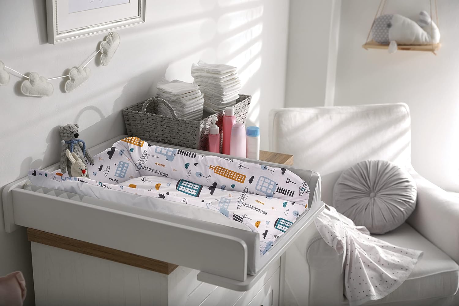 - 🔶 Die Wickelauflage ist aus qualitativ hochwertiger , zertifizierter und für das Kind völlig sicherer Baumwolle gefertigt. Zudem ist sie sehr praktisch und in der Waschmaschine leicht zu reinigen.