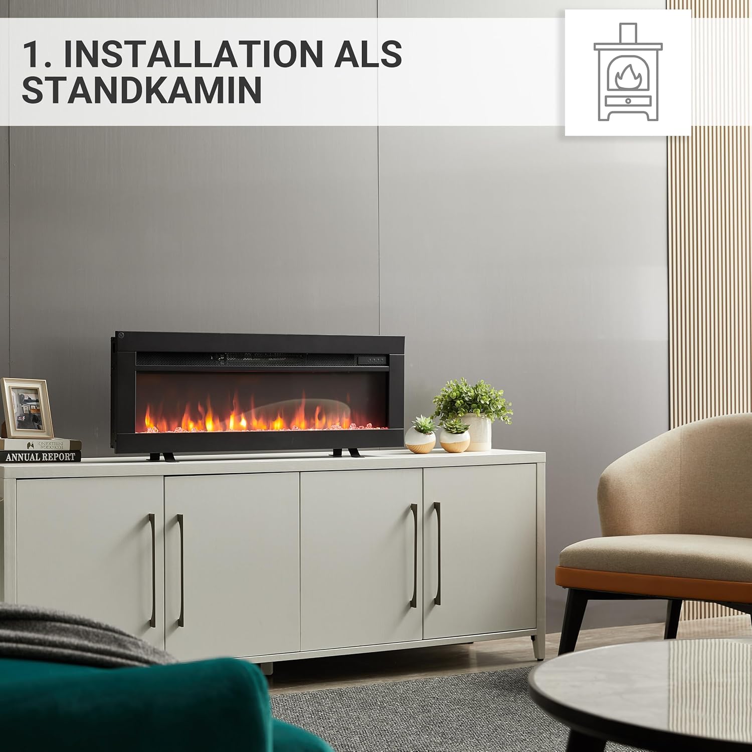 - HEIZUNG: Strombetriebene Heizalternative und echtes Kamin-Erlebnis in einem. Die Heizleistung ist in 2 Stufen zuschaltbar (1000/2000 W) und kann auch grössere Räume problemlos erwärmen. Jederzeit ein wohlig-warmes Kamin-Gefühl. Auch ohne Heizung ein Blickfang - für perfekte Sommernächte. Temperaturwahl sorgt für ein vorgewähltes, konstantes Temperaturniveau. Doppelte Sicherheit durch Überhitzungsschutz und Open-Window-Detection!