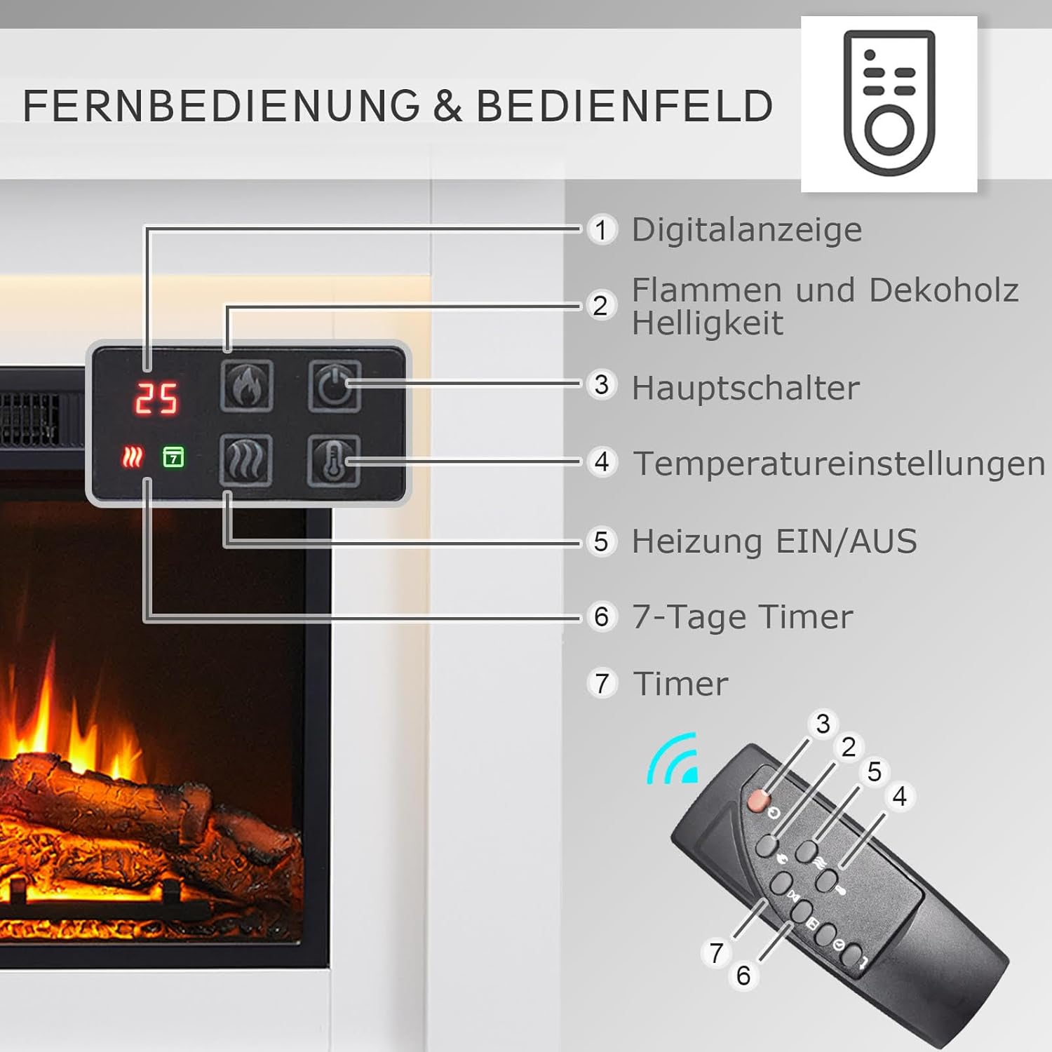 • FERNBEDIENUNG: Eine Fernbedienung (inkl. Batterien) ist im Lieferumfang bereits enthalten. Damit können die 3D-Flammeneffekte, Heizlüfter, Temperatur, Timer und Programmierung einfach bedient werden.