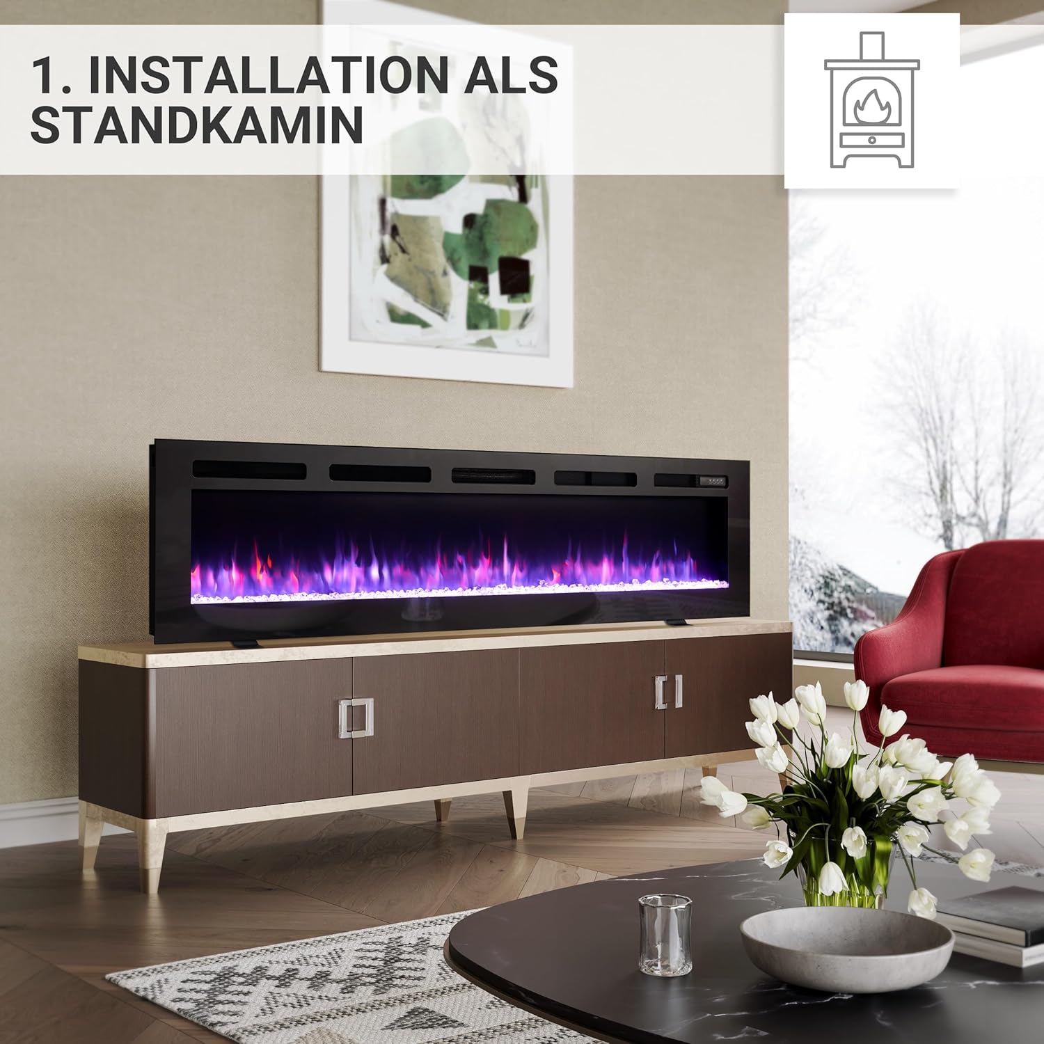 BALDERIA Leif 60" Elektrokamin - Elektrischer Stand-, Wand- oder Einbaukamin mit Heizung 1000/2000 W