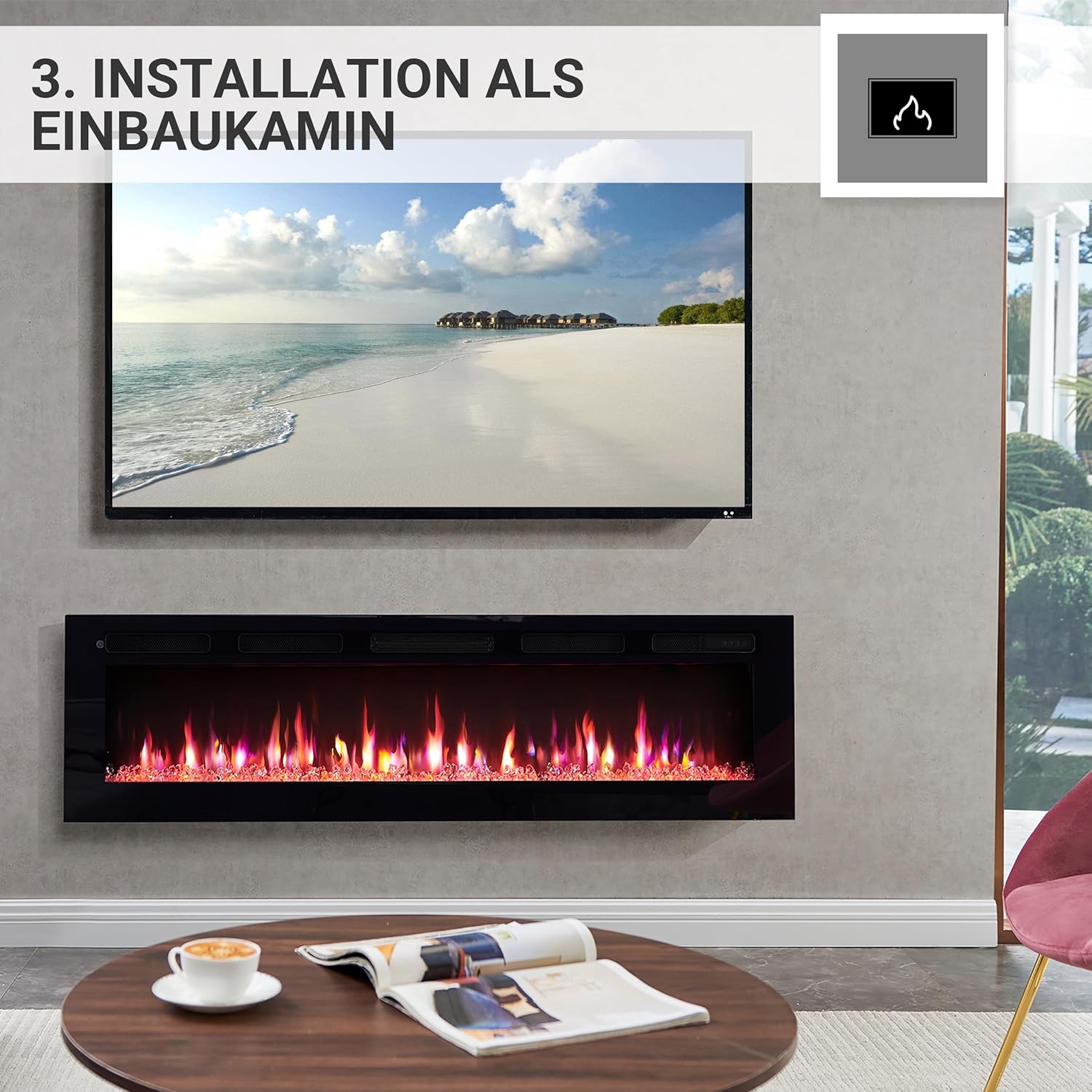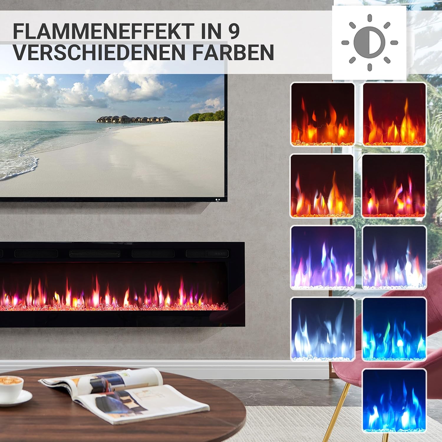 • FERNBEDIENUNG: Eine Fernbedienung (inkl. Batterien) ist im Lieferumfang bereits enthalten. Damit können die 3D-Flammeneffekte, Helligkeit, Heizlüfter, Temperatur, Timer und Programmierung einfach bedient werden.