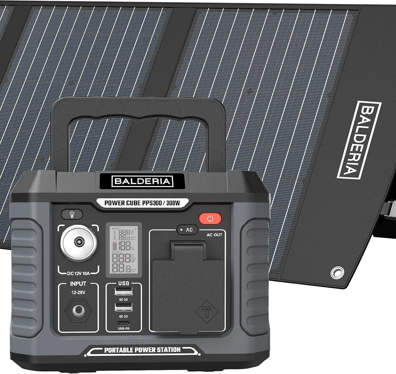 BALDERIA Power Set PS300-120 | Tragbare Powerstation 300W + Solarpanel 120W | Solar-Generator, Kraft