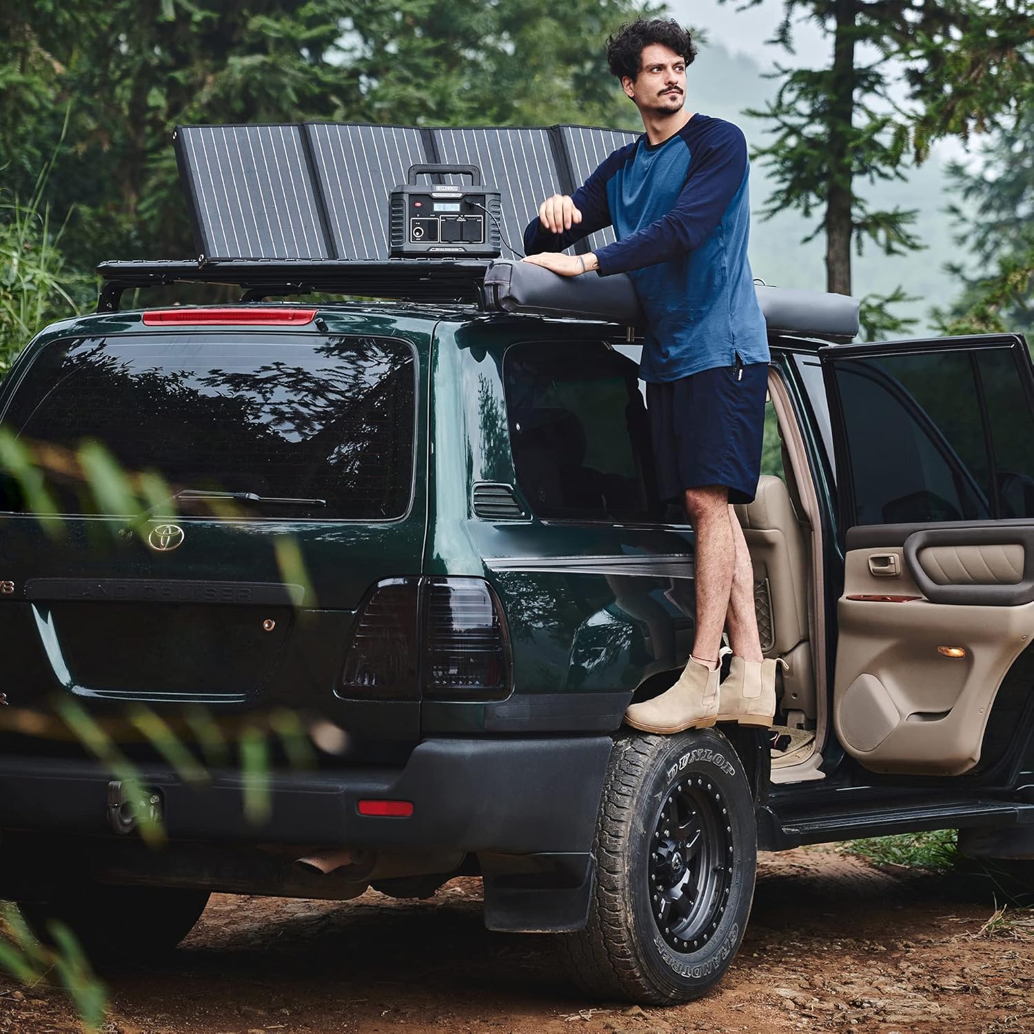 • AUTARKES, LEISTUNGSSTARKES KRAFTWERK | Kombination ausdauernder Lithium-Ionen-Batterie zur Stromspeicherung, kurzen Ladezeiten (MPPT) und effizientem Solarmodul mit hohem Wirkungsgrad. Autarke Stromerzeugung. Power Station: 1 Steckdose 230V (300W), 2